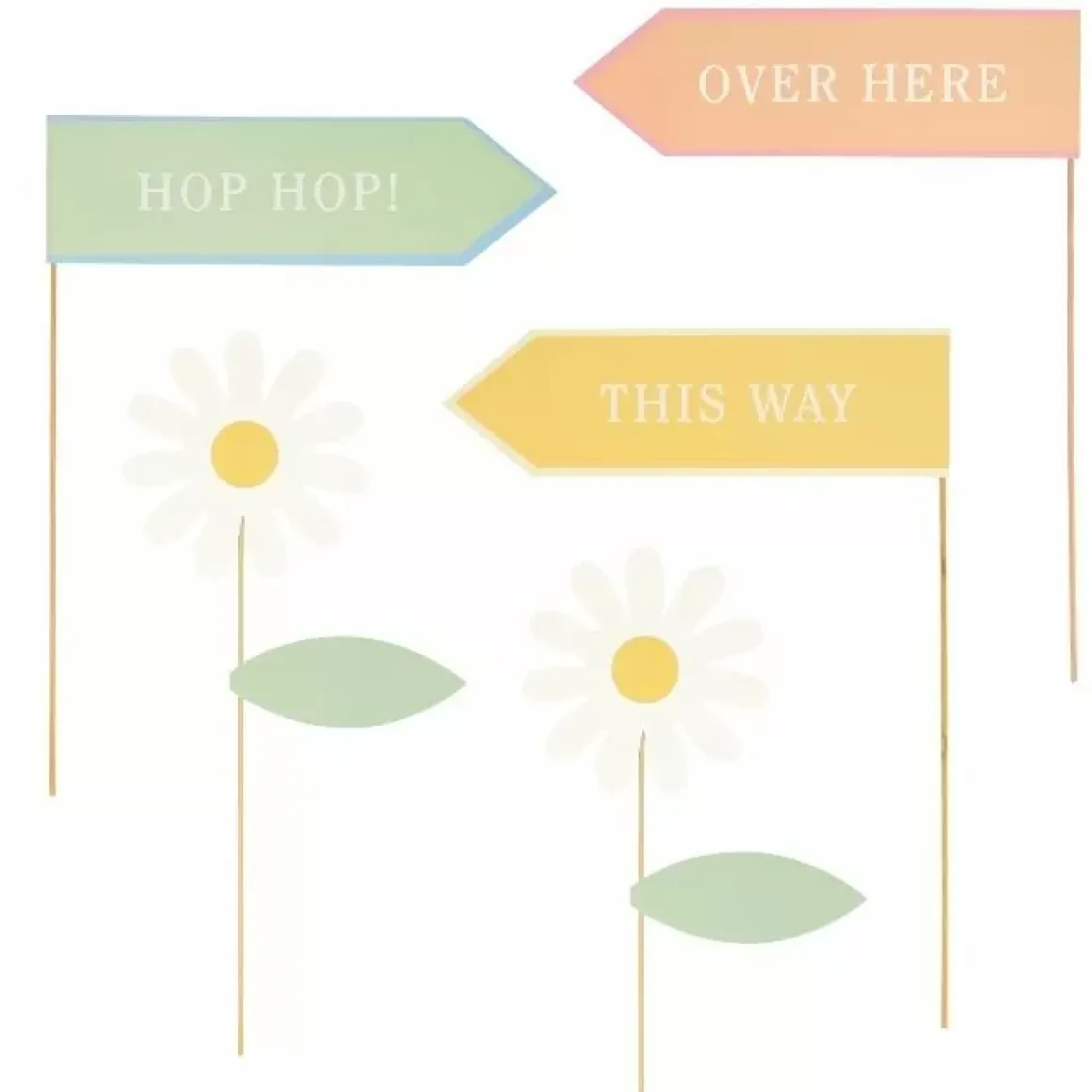 Zeer Uitgebreide Set Met: 4 Konijnen, 2 Madeliefjes En 3 Wegwijzers.