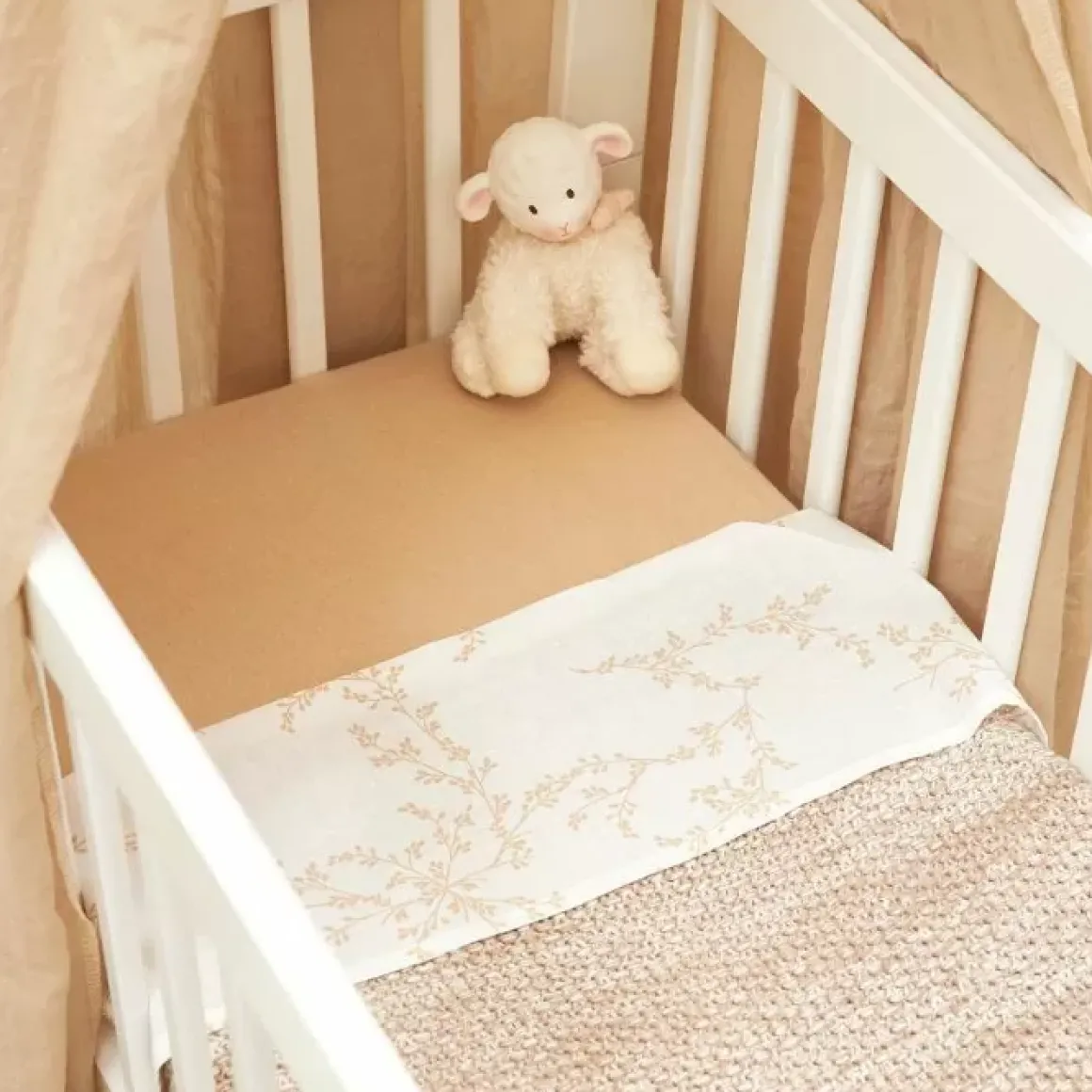 Verwen Je Baby&Rsquo;Tje Met Dit Meyco Baby Wieglaken 2-Pack Branches In De Kleur Sand. Een Set Van Twee Wieglakentjes, ÉÉN In Een Effen Kleur En ÉÉN In Een Offwhite Kleur Met Beige Takkenpatroon. Het Heerlijke Zachte Laken Is Vriendelijk Voor De Babyhuid, Ademend En Vochtregulerend.