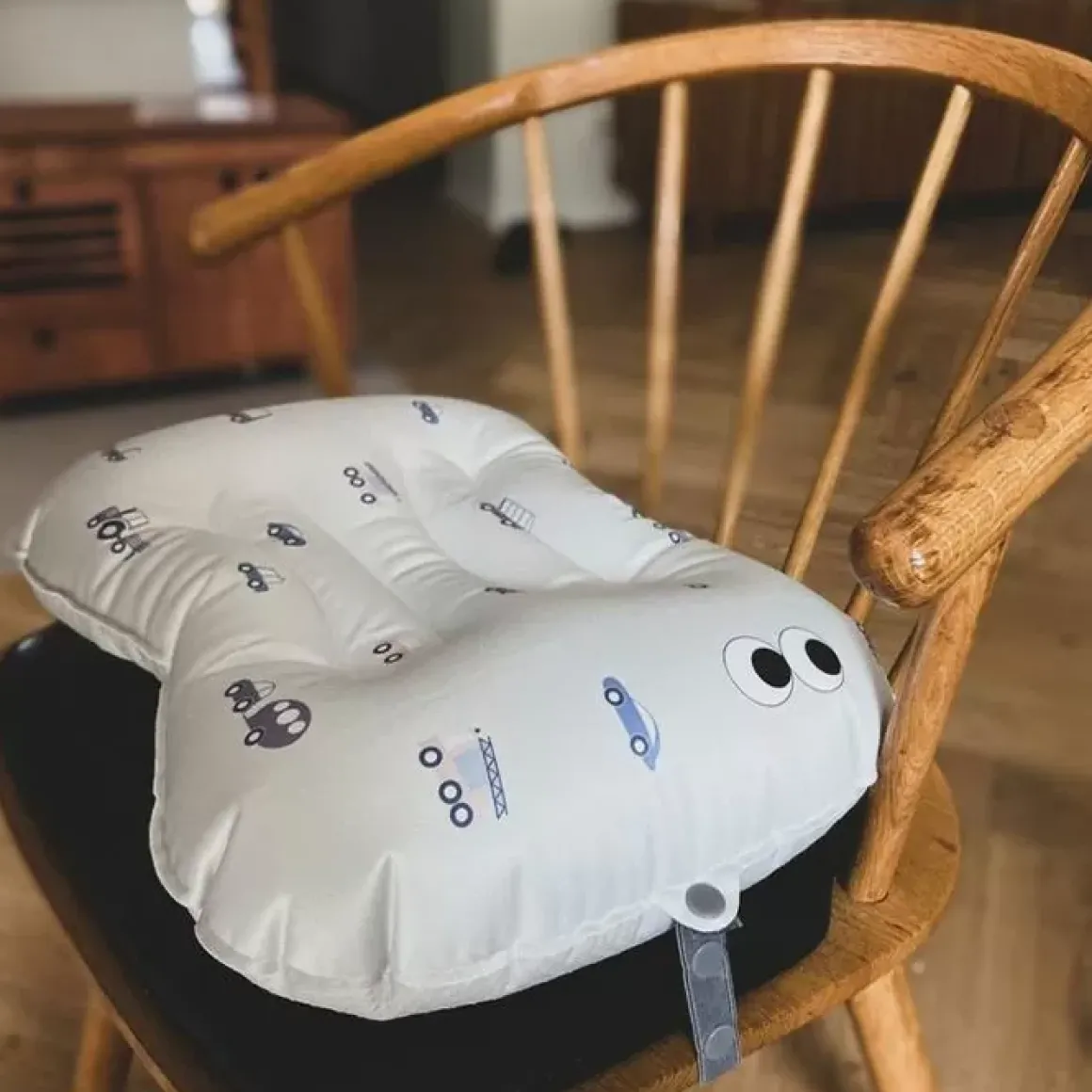 De Opblaasbare Zitkussen Little Wheels Van Noui Noui Is Speciaal Voor Kindjes Die Te Groot Zijn Voor Een Kinderstoel En Te Klein Voor Een Volwassen Stoel.