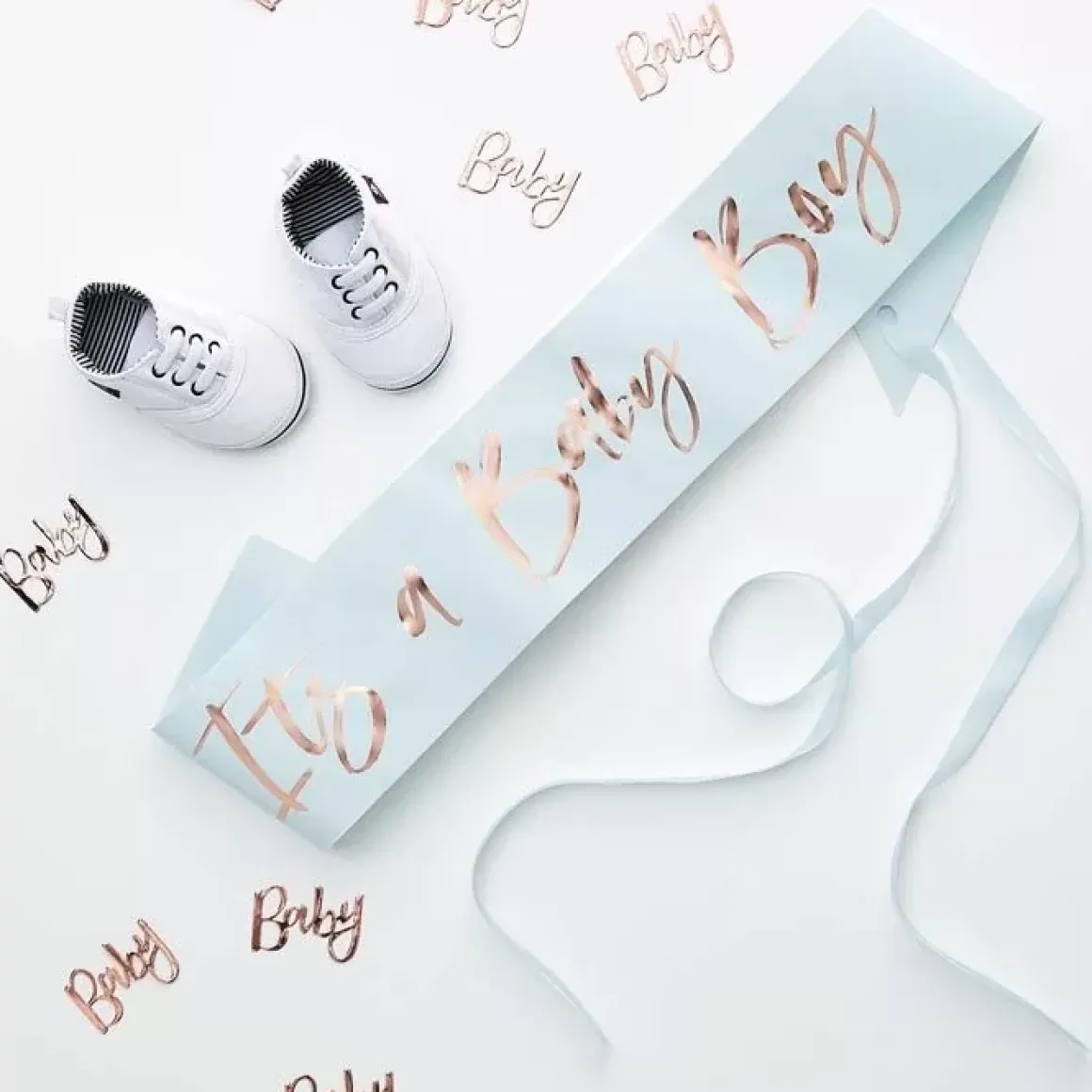 Hoera Het Is Een Jongen! Deze Sjerp Is Een Echte Musthave Voor Iedere Moeder Die Een Jongen Krijgt. Onze Prachtige Blauw Met RosÉGoude Sjerp Zal Zeker In De Smaak Vallen Bij De Gasten. Hierdoor Zal De Mama In SpÉ Zich Extra Speciaal Voelen. De Sjerp Is Gemaakt Van Papier En Is Gemakkelijk Door Middel Van Een Lint Vast Te Maken.&Nbsp;