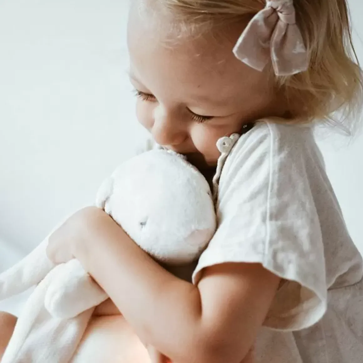 Heerlijk Rustig Slapen Met De Lieve Humming Friend Rabbit Cream Van Moonie. Deze Unieke Slaapknuffel Heeft Een Lampje In Het Buikje Zitten Dat Zacht En Warm Licht Geeft. Jouw Kindje Hoeft Nooit Meer Bang Te Zijn In Het Donker!