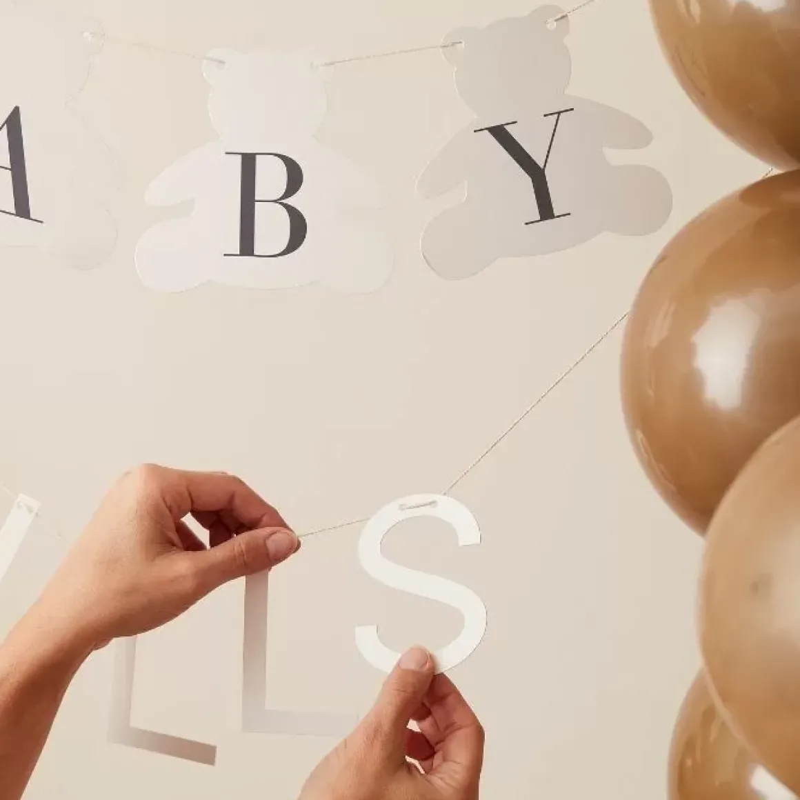 Versier De Babyshower Met Deze Schattige Aanpasbare Babyslinger Uit De Teddy Bear Babyshower Collectie Van Ginger Ray. Hoe Leuk Is Het Om De (Achter)Naam Van De Baby Op De Slinger Te Hangen. De Aanstaande Mama Zal Hier Zeker Van Smelten!