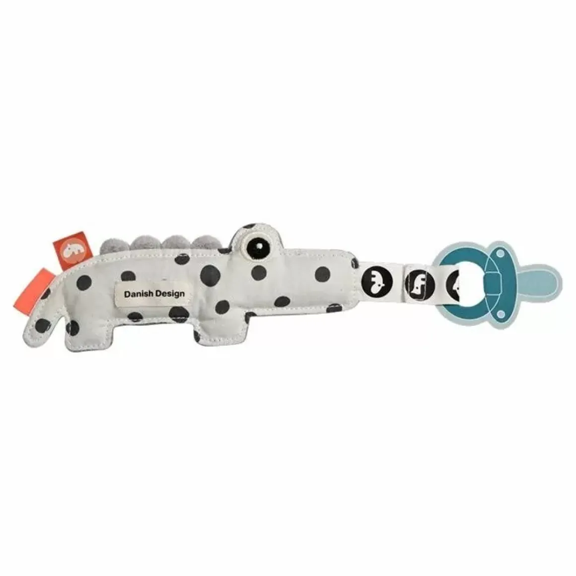 Speciaal Voor De Kleine Avonturiers Die Ook Af En Toe Een Dutje Nodig Hebben! Dit Speenkoord Van Done By Deer Heeft Een Klein Krokodillen Speeltje. Croco Heeft Aan De Ene Kant Zwarte Stippen En Aan De Andere Kant Blauwe Zachte Stof. Handig Zo’N Speeltje En Speenkoord In ÉÉN! Je Kunt De Speen Bevestigen Door Middel Van De Klittenbandclip Of De Elastische Lus.&Nbsp;