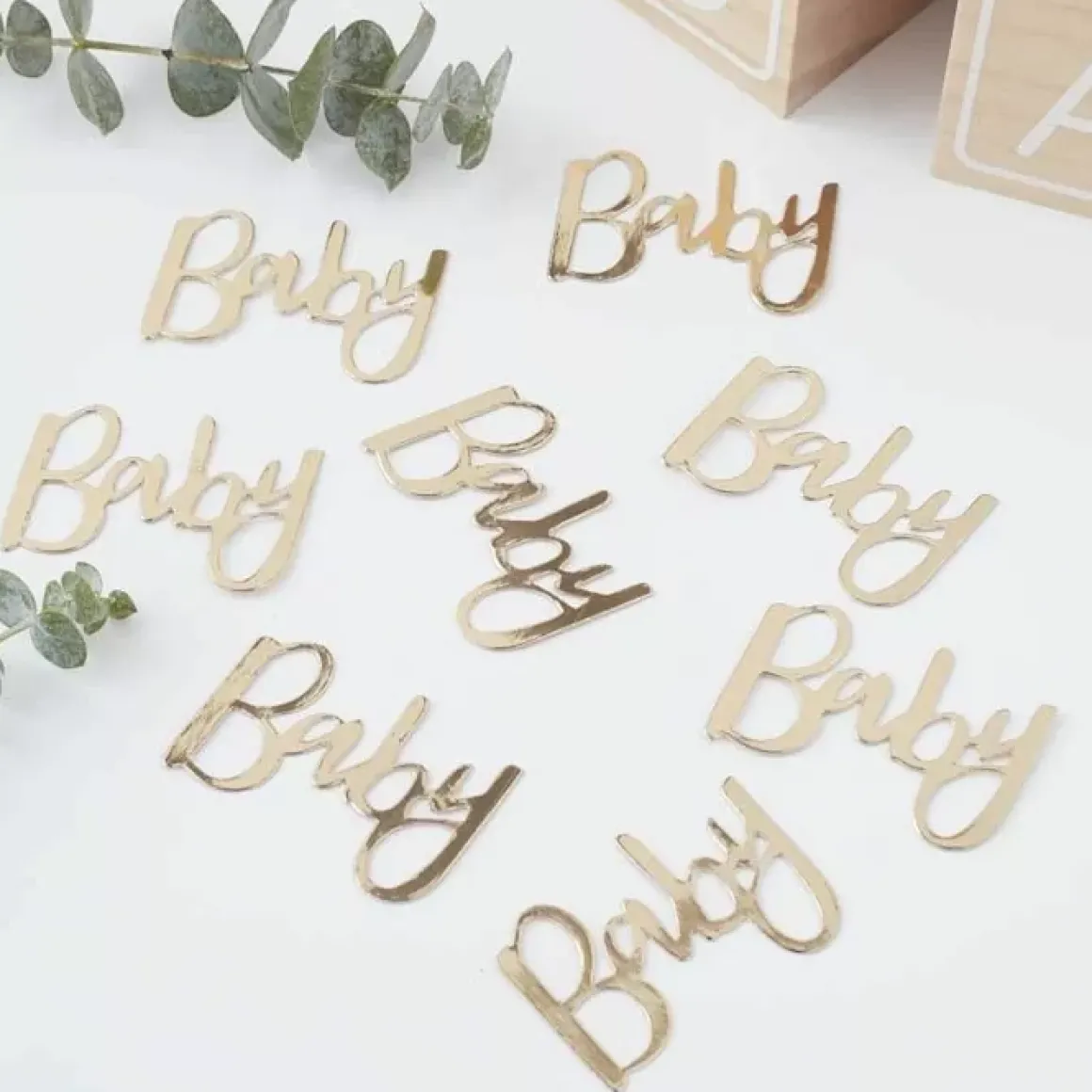 Strooi Deze Gouden Baby Confetti Over De Tafels Voor Een Prachtig Effect. Door Het Goudfolie Geeft Het Meteen Een Prachtige Uitstraling Aan Je Tafel. De Mooie Confetti Is Ideaal Voor Babyshowers, Gender Reveal Feestjes En Kraamborrels.