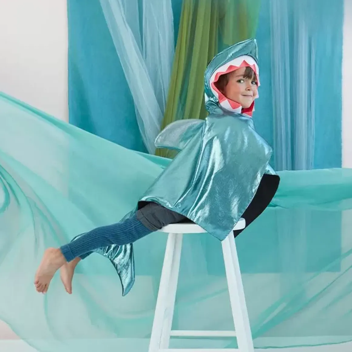 Is Jouw Kleintje Gefascineerd Door Zeedieren? En Dan Voornamelijk Haaien? Geef Dan Deze Te Gekke Verkleedset Haai Van Meri Meri Cadeau. Het Setje Heeft Een Gevoerde Glinsterende Cape Met Een Gewatteerde Vin, Staart En Een Capuchon Met Viltentanden. Hap Hap Hap! Maak Dat Je Wegkomt! Leuk Voor In De Verkleedkist Of Tijdens Carnaval. De Set Is Geschikt Voor Kinderen Tussen De 3-6 Jaar.