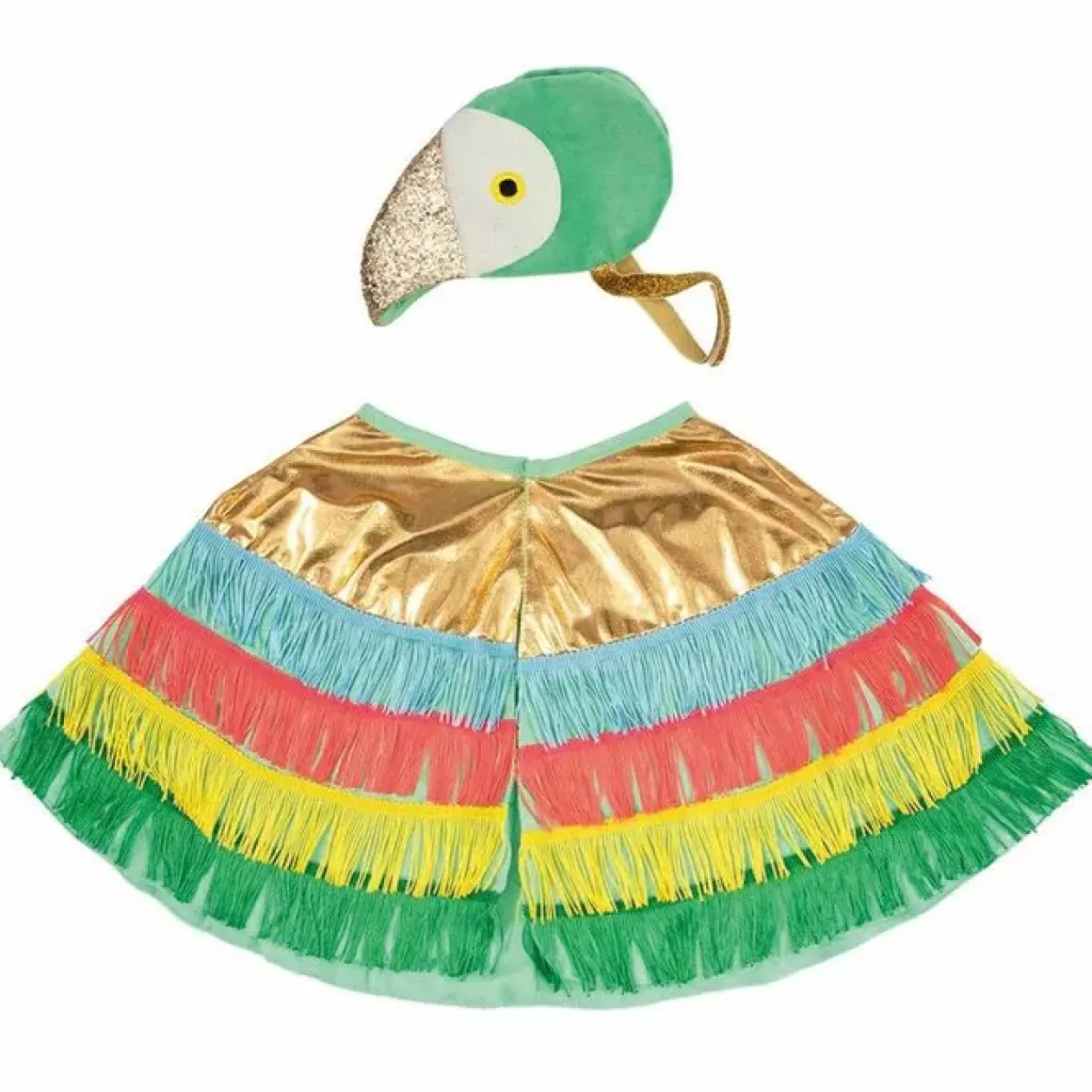 Laat De Franjes Van De Cape Heen En Weer Schudden Terwijl Je Klappert Met Je Vleugels! De Prachtige Glittersnavel Op Het Masker Maakt Het Plaatje Helemaal Af.