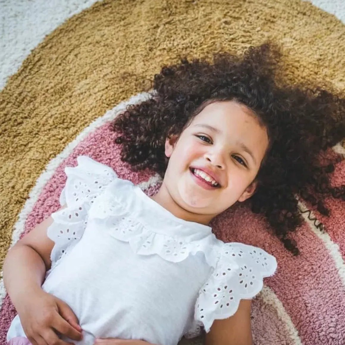 You Are My Rainbow! Dit Vrolijke Regenboog Kleedje Tovert Gegarandeerd Iedere Morgen Een Lach Op Je Gezicht! Op Dit Zachte Speelse Kleedje Is Een Regenboog Te Zien In De Kleuren Okergeel, Lichtroze En Roze.&Nbsp;Het Rechthoekige Kleed Is 90Cm Bij 130Cm Groot En 0,7Cm Dik. Goed Om Te Weten Tapis Petit Werkt Alleen Samen Met&Nbsp;Gecertificeerde Fabrikanten Die Goed Voor Mens En Milieu Zorgen. De Vloerkleden Van Tapis Petit Kun Je Overigens Gewoon In De Wasmachine Stoppen.&Nbsp;&Nbsp;