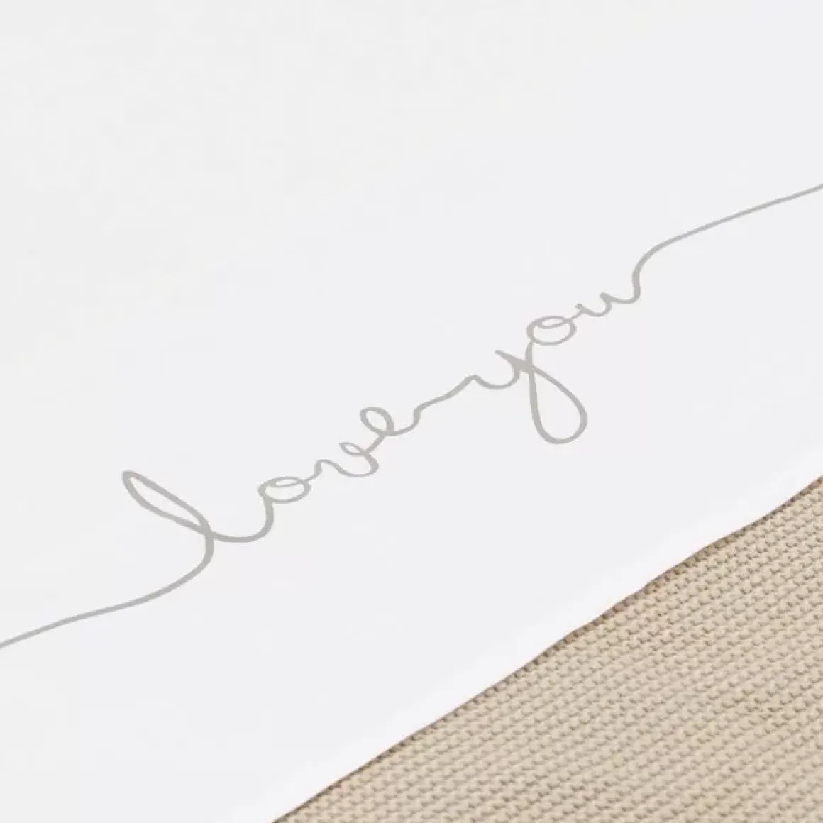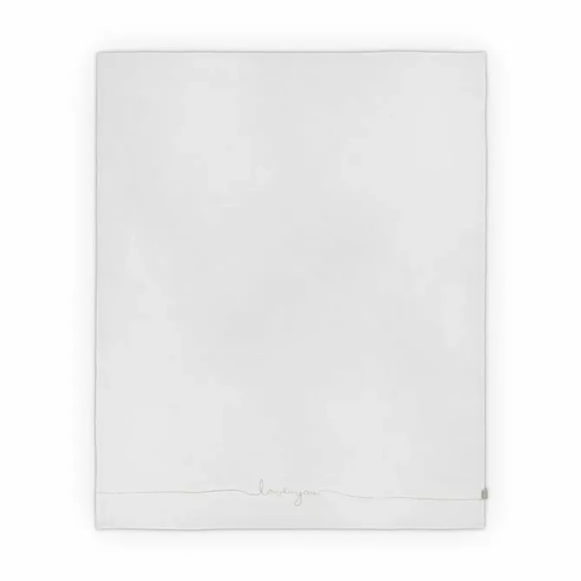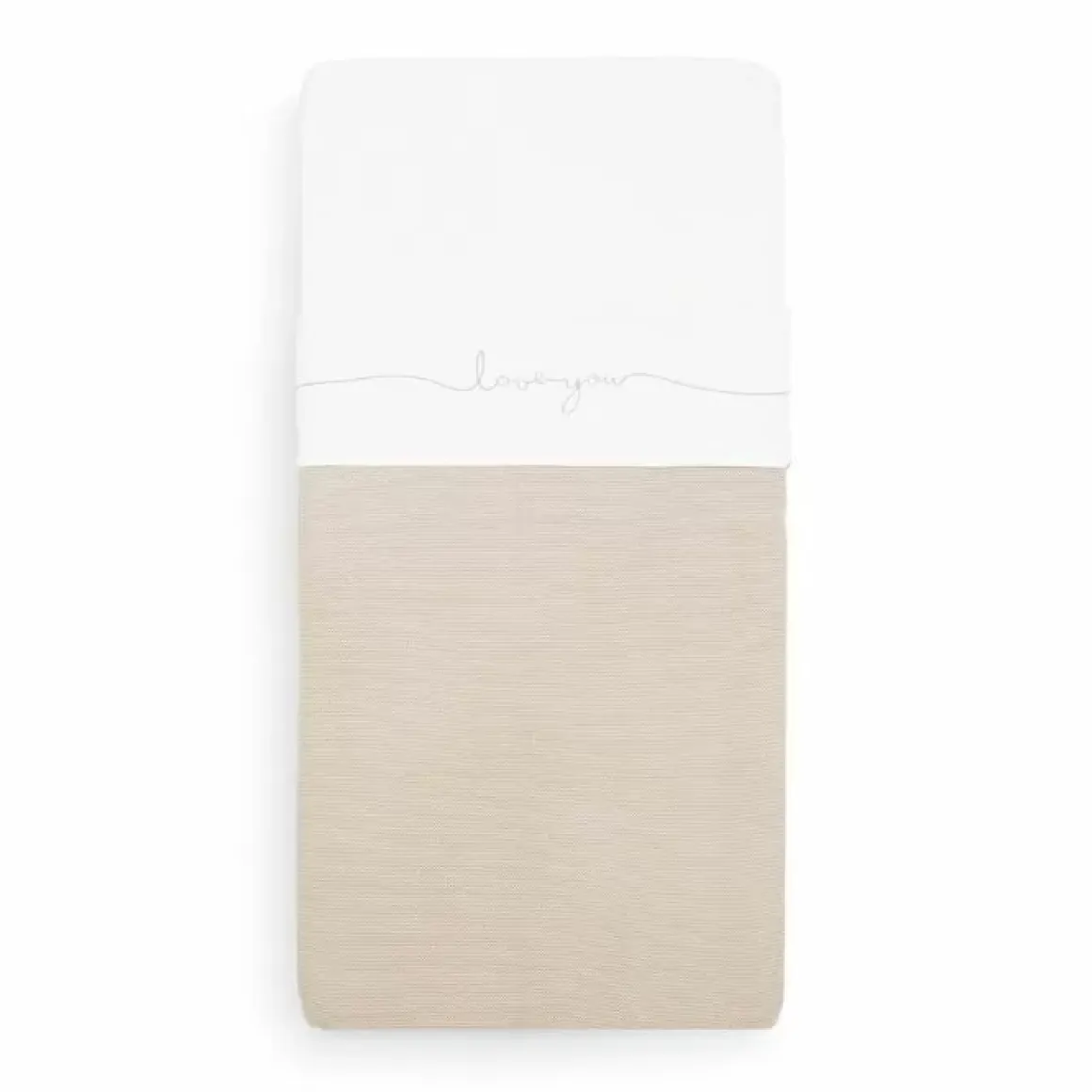 Een Super Zacht Lakentje Speciaal Voor In Het Wiegje. Het Lakentje Is Gemaakt Van Katoen En Heeft Een Afmeting Van 75X100 Cm. Het Lakentje Is Wit En De Tekst ‘Love You’ Is In De Kleur Nougat Uit De Nieuwste Jollein Collectie.Wieglaken Love You Nougat Jollein
