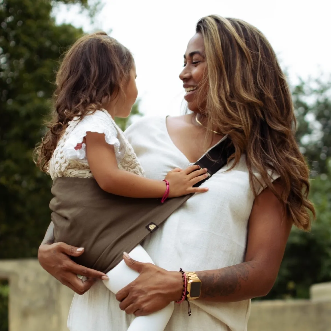 De Drager Is Geschikt Voor Kindjes Van 9 Maanden – 4 Jaar (Max 20 Kg). De Coffee Kinderdrager Is 100% Katoen Met Gouden Details In De Logos, Het Zwarte Band Is 100% Nylon.