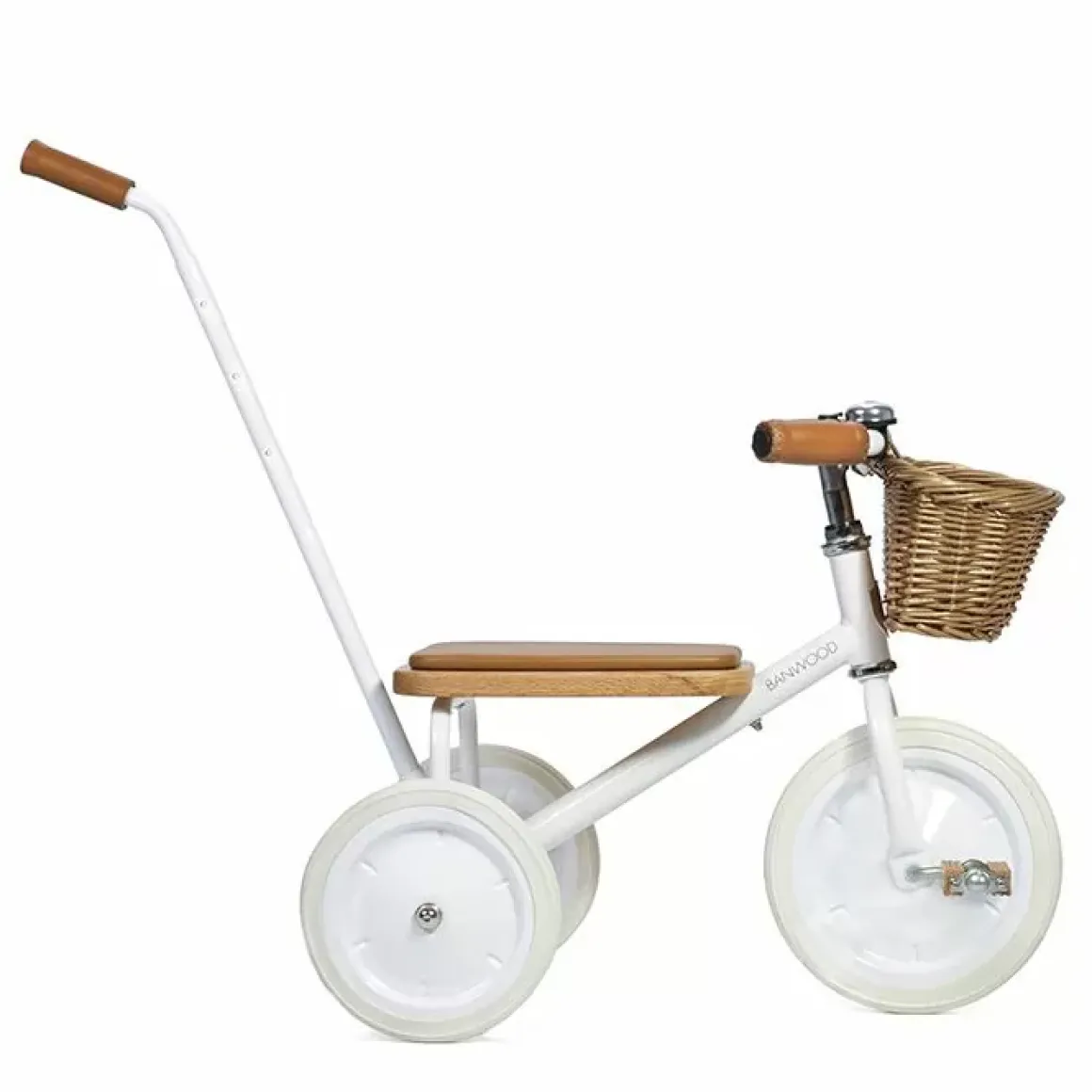 De Banwood Trike Is Een Klassiek Ontworpen Peuter Driewieler Is Een Grote Bron Van Blijdschap En Troost Voor Alle Kinderen. Met Een Zacht Gewatteerd Zitje, De Neutrale Witte Kleur, De Veganistische Leren Details, De Glimmende Fietsbel, De Eikenhouten Pedalen, Het Rieten Mandje Aan De Voorkant Om De Favoriete Knuffel In Mee Te Laten Fietsen, Zal Dit Fietsje Een Groot Succes Zijn Bij Ieder Kind.