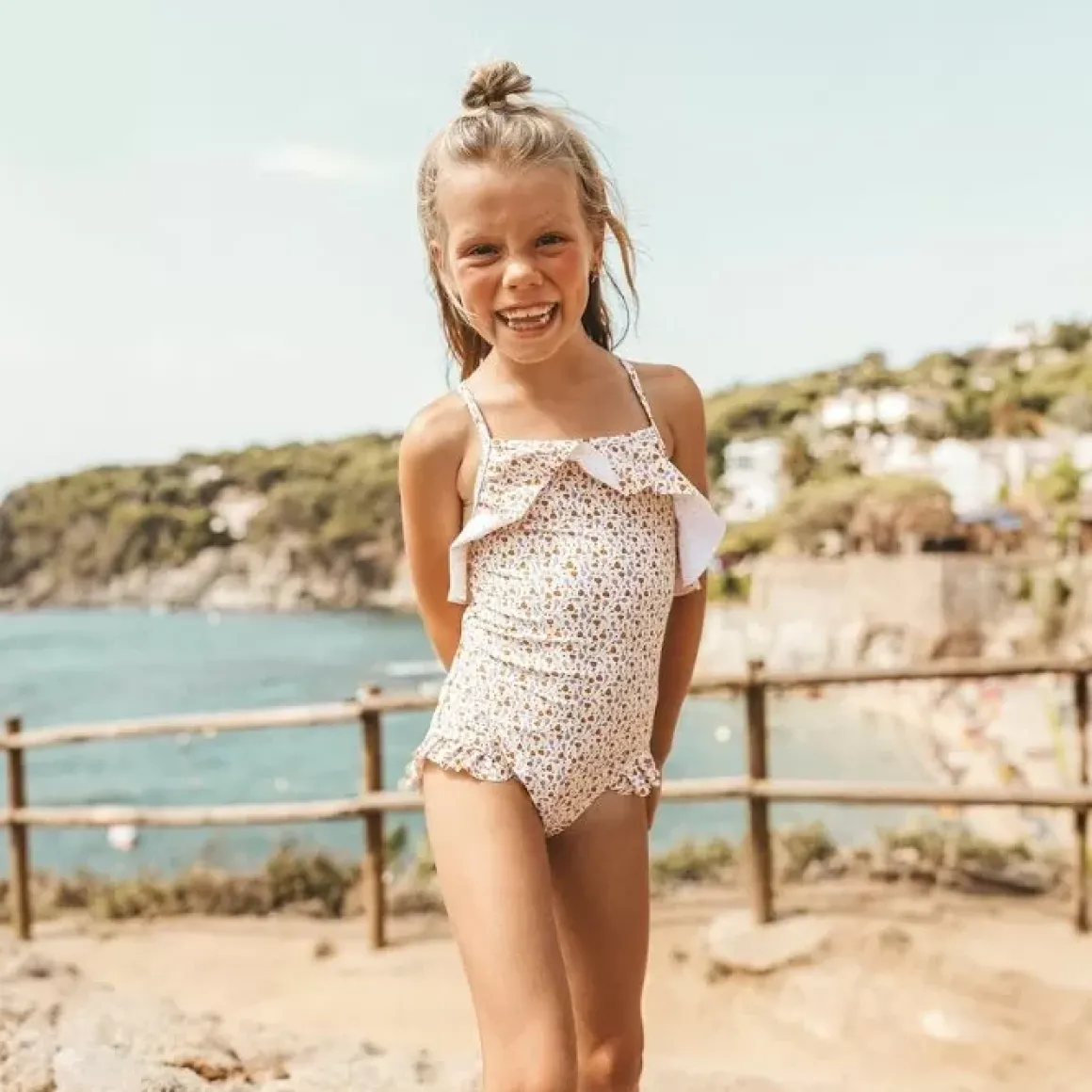 Laat Jouw Kleintje Schitteren In Het Saar Badpak Van Salted Stories. Dit Schattige En Stijlvolle Badpak Is Perfect Voor Strandavonturen Dankzij De Unieke Print Van Handgeschilderde Bloemen En De Schattige Ruffles. De Verstelbare Gekruiste Schouderbandjes Zorgen Voor Een Optimale Pasvorm, Terwijl De Upf50+ Bescherming In De Stof Jouw Kleintje Beschermt Tegen Verbranden In De Zon. Het Saar Badpak Is Volledig Gevoerd Voor Extra Comfort En Laat Jouw Kleintje Zonder Twijfel Stralen Op Het Strand!