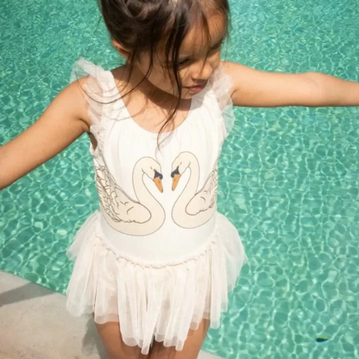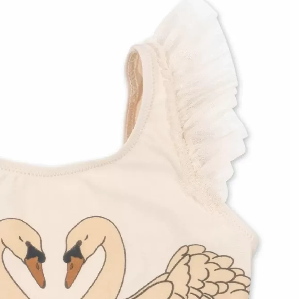 Wat Een Plaatje! Dit Schattige Badpak Van Konges Slojd, Ontworpen Voor Waterpret En Zomerse Dagen, Is Gemaakt Van 80% Gerecycled Polyester En 20% Elastaan, Wat Zorgt Voor Duurzaamheid En Flexibiliteit. Met Drukknopen Aan De Beenopeningen In De Maten Van 6 Tot 18 Maanden Wordt Aankleden En Verschonen Een Fluitje Van Een Cent. Het Ontwerp Met De Elegante Zwanenprint Belooft Niet Alleen Een Unieke Stijl Maar Ook Een Comfortabele Pasvorm Voor Uw Kleintje, Of Ze Nu In Het Water Spettert Of Aan De Kant Speelt.