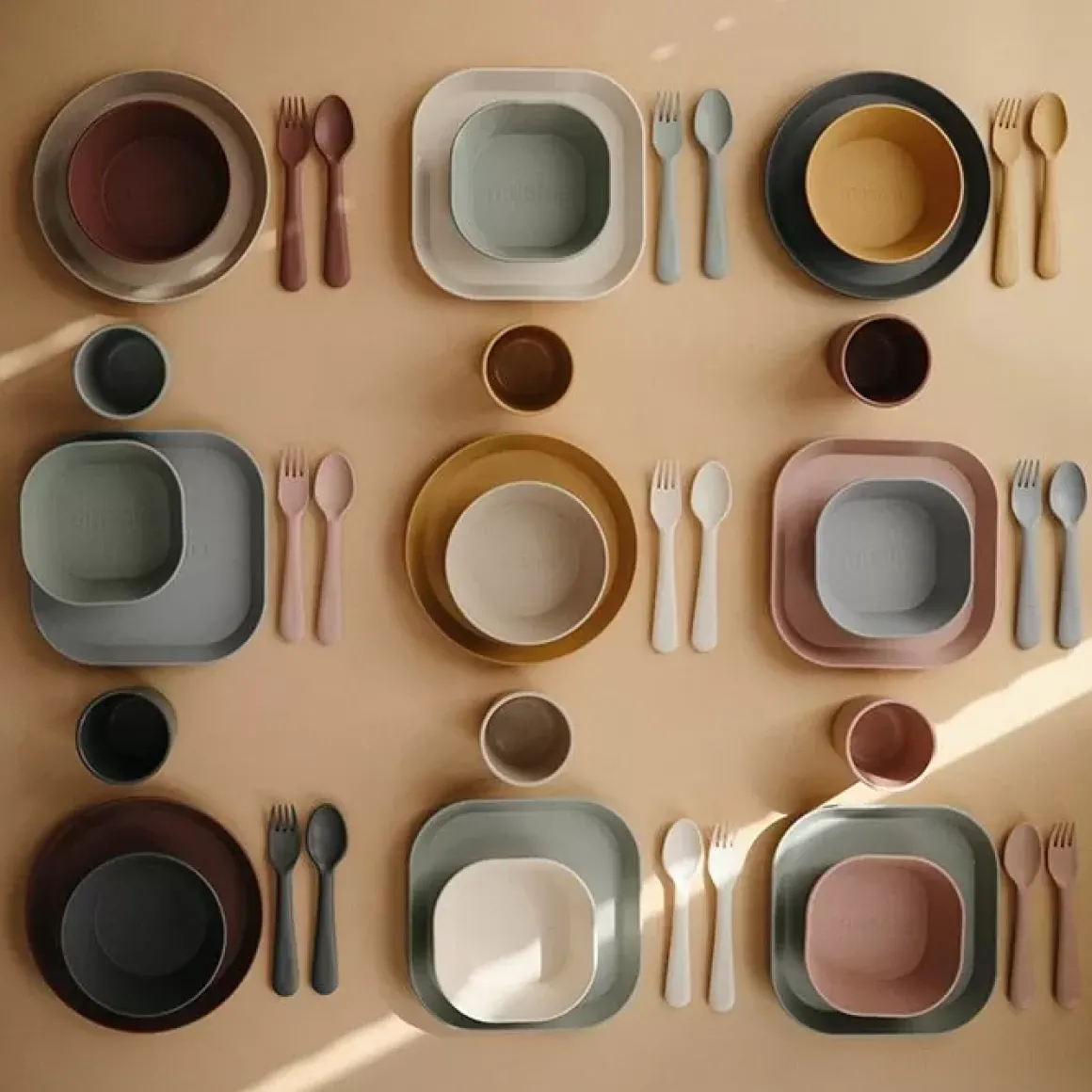 Aan Tafel Met Deze Stijlvolle En Eenvoudige Ronde Caramel Borden Van Mushie. De Borden Met Een Opstaande Rand Zijn Gemakkelijk In Gebruik Door Peuters En Kleuters.