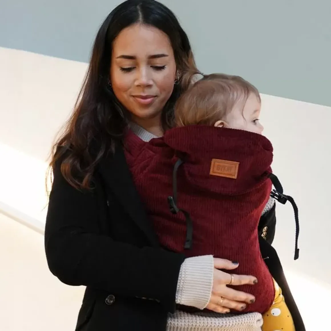 Op Zoek Naar Een Hippe Betaalbare Draagzak? De Click Carrier Classic Ribbed Velvet Berry Red Van Bykay Is Een Ergonomische Draagzak Met Clips, Waarin Je Baby Op Een Ergonomische Manier Gedragen Kan Worden.