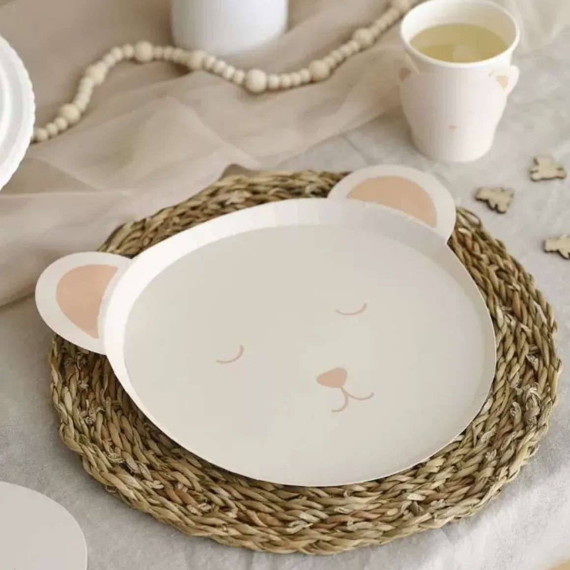 We Can Bear-Ly Wait! Dek De Tafel Vol Vreugde Met Deze Schattige Teddybeer Gezicht Bordjes Uit De Teddy Bear Collectie Van Ginger Ray. De Neutrale En Caramelkleurige Tonen Maken Deze Bordjes Tot Een Zoete Aanvulling Op Elke Babyshower Of Verjaardag.