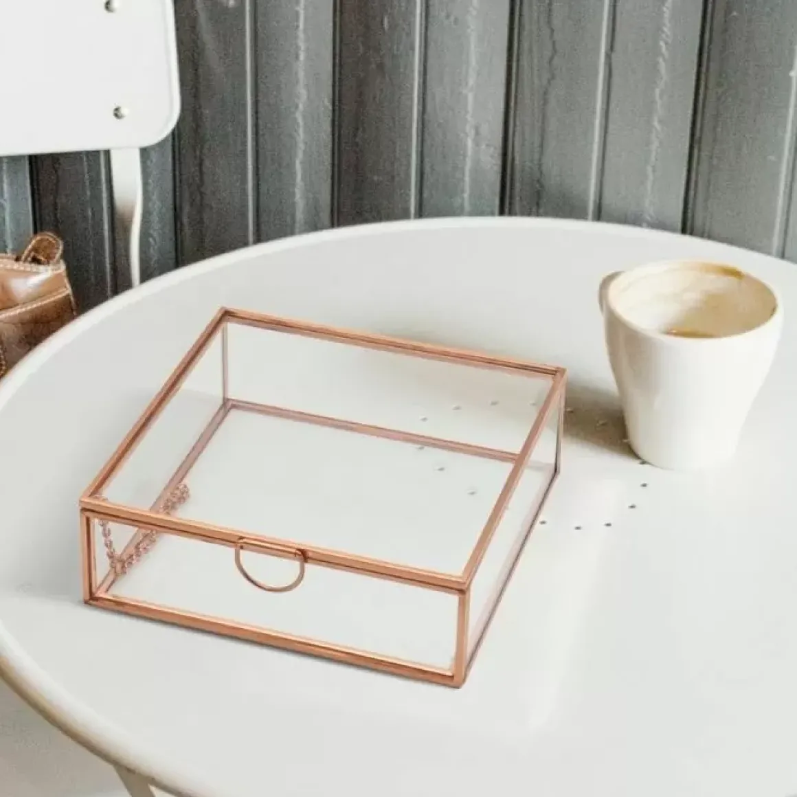 Gespot Op Pinterest En Nu Ook Bij Ons Verkrijgbaar! Bewaar Je Favoriete Items In Dit Glazen Bewaardoosje Met Roségouden Randjes.