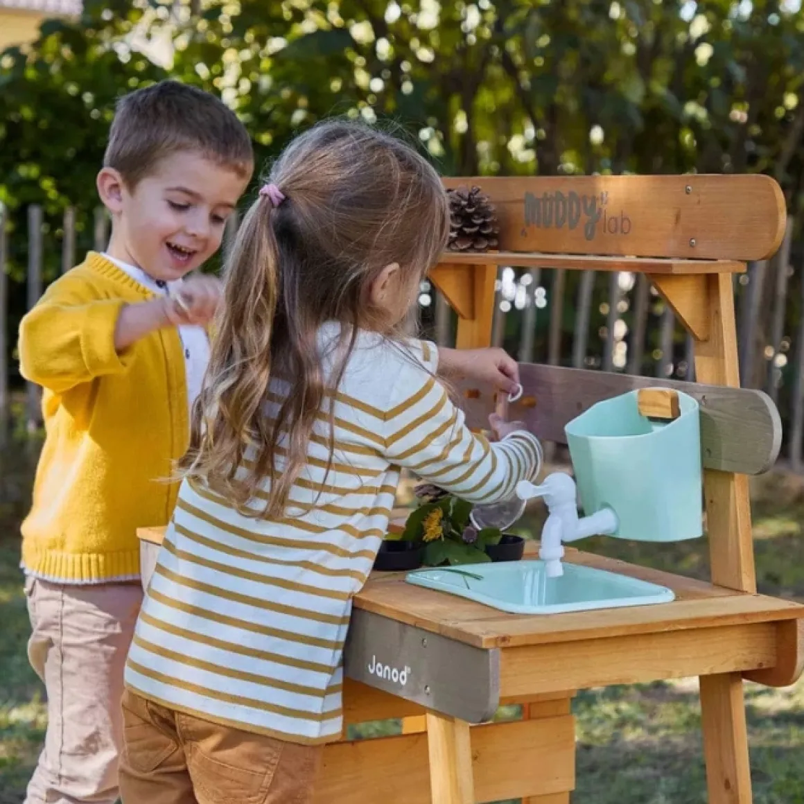 Dit Speelgoed Is Geschikt Voor Buitengebruik En Zal Alle Ervaringen Van Jong En Oud Doorstaan. Geleverd Met 10 Accessoires Is Het Muddy Lab Een Echt Natuurontdekkingslaboratorium. Het Bestaat Uit 2 Gootstenen En 2 Verwijderbare Plastic Potten: Perfect Om Bloemen Of Aarde Te Verzamelen! Een Bak Met Een Echte Kraan: Gewoon Vullen En De Kraan Van Rechts Naar Links Draaien Om Het Water Eruit Te Laten Stromen!