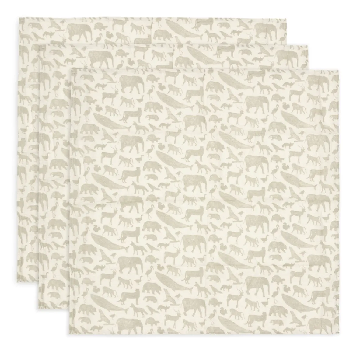 Jollein Hydrofiele Doeken Animals Olive Green (3St)