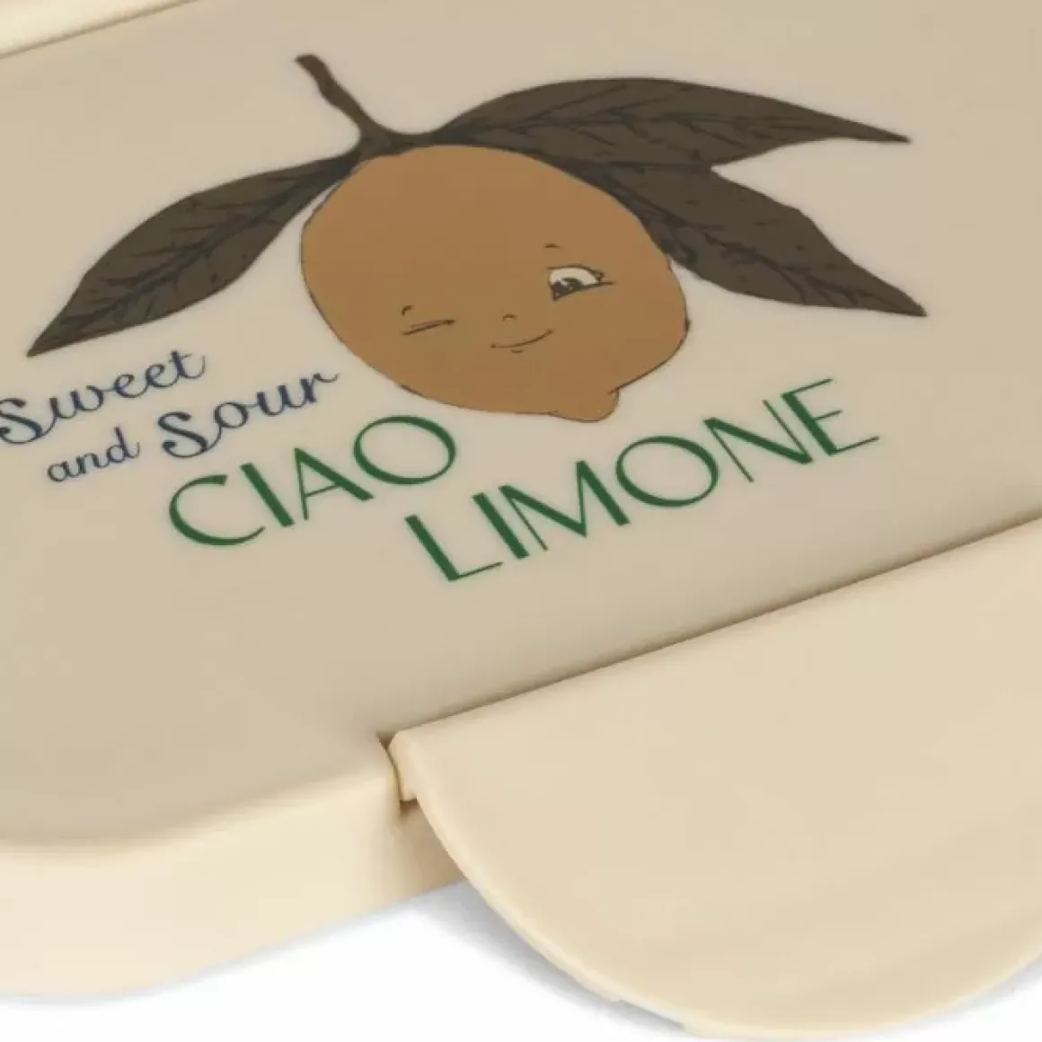 Breng Een Vleugje Vrolijkheid En Stijl Naar Lunchtijd Met De Konges Slojd Lunchbox Lemon Squeeze Me. Deze Charmante Lunchbox, Uitgevoerd In Een Crème Kleur, Wordt Gesierd Door Een Speelse Illustratie Van Een Citroen En De Tekst “Sweet And Sour, Ciao Limone”. Een Perfecte Mix Van Functionaliteit En Design Die Elke Maaltijd Opfleurt.