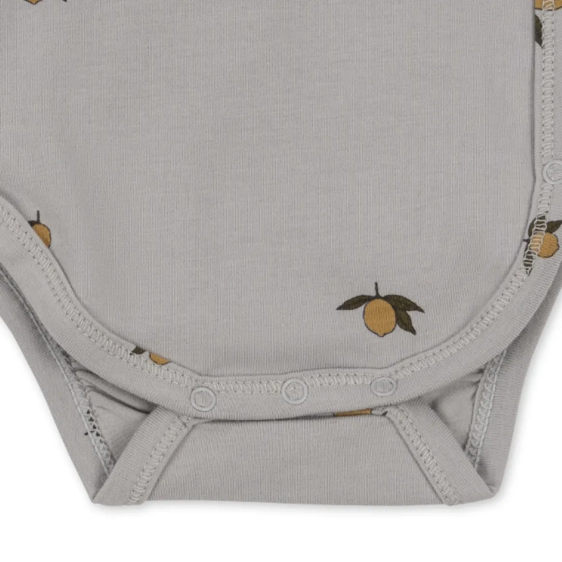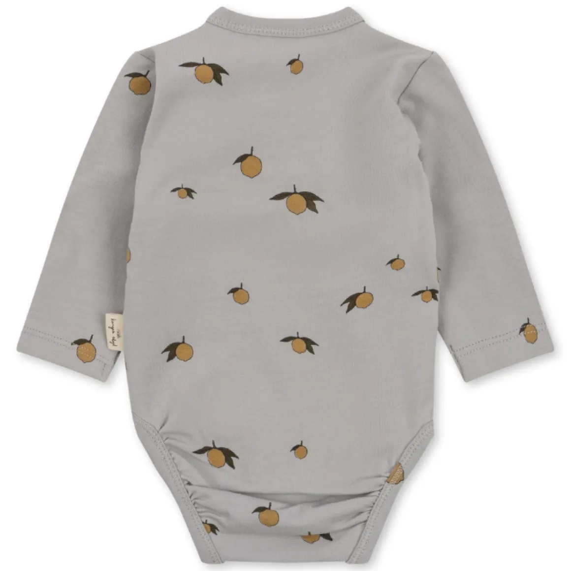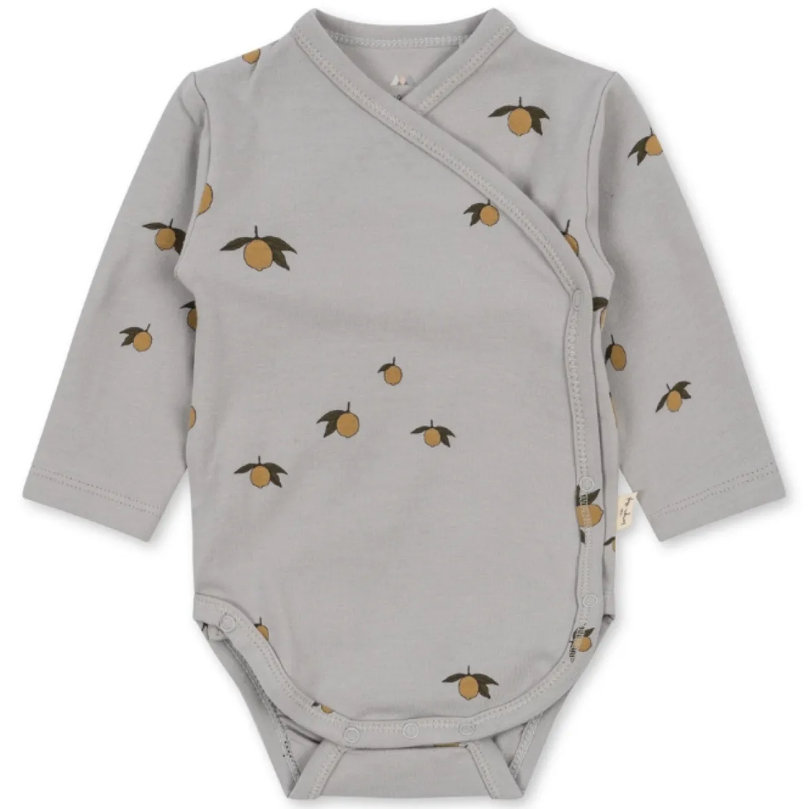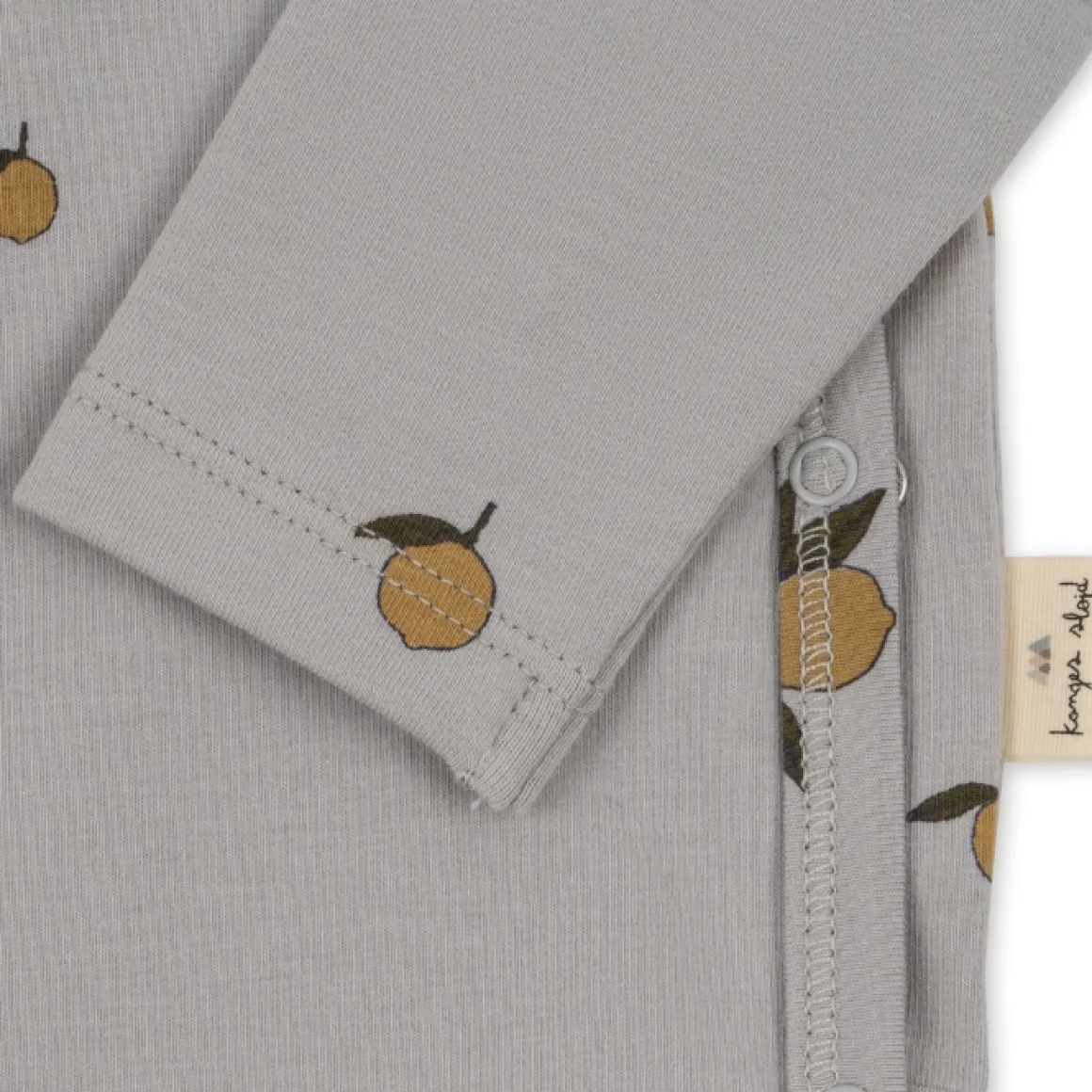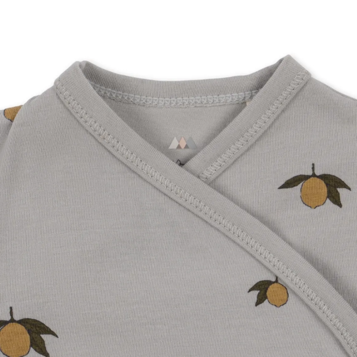 Deze Zachte Overslagromper Lemon Harbor Met Lange Mouwen Van Konges Slojd Is Gemaakt Van 95% Biologisch Katoen En 5% Elastaan, Met Een Vleugje Stretch. De Drukknopen Langs De Zijkanten En In Het Kruis Maken Het Gemakkelijk Om Het Kledingstuk Om De Baby Te Wikkelen. De Romper Is Gots Gecertificeerd.
