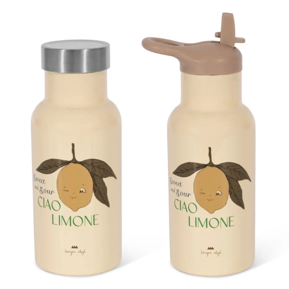 Verrijk Je Dagelijkse Hydratatie Met De Konges Slojd Thermosfles Lemon Squeeze Me, Perfect Voor Zowel Warme Als Koude Drankjes. Met Een Uniek Design Dat Een Zonnige Citroen En De Speelse Tekst “Sweet And Sour, Ciao Limone” Toont, Wordt Drinken Een Stijlvol Moment Van Genot.