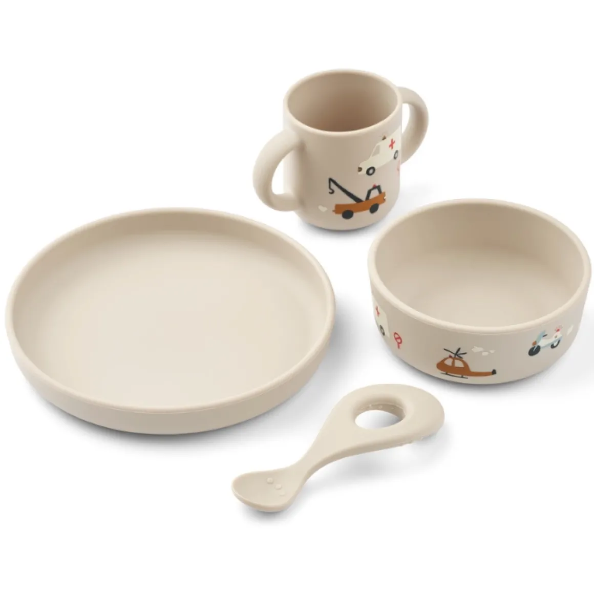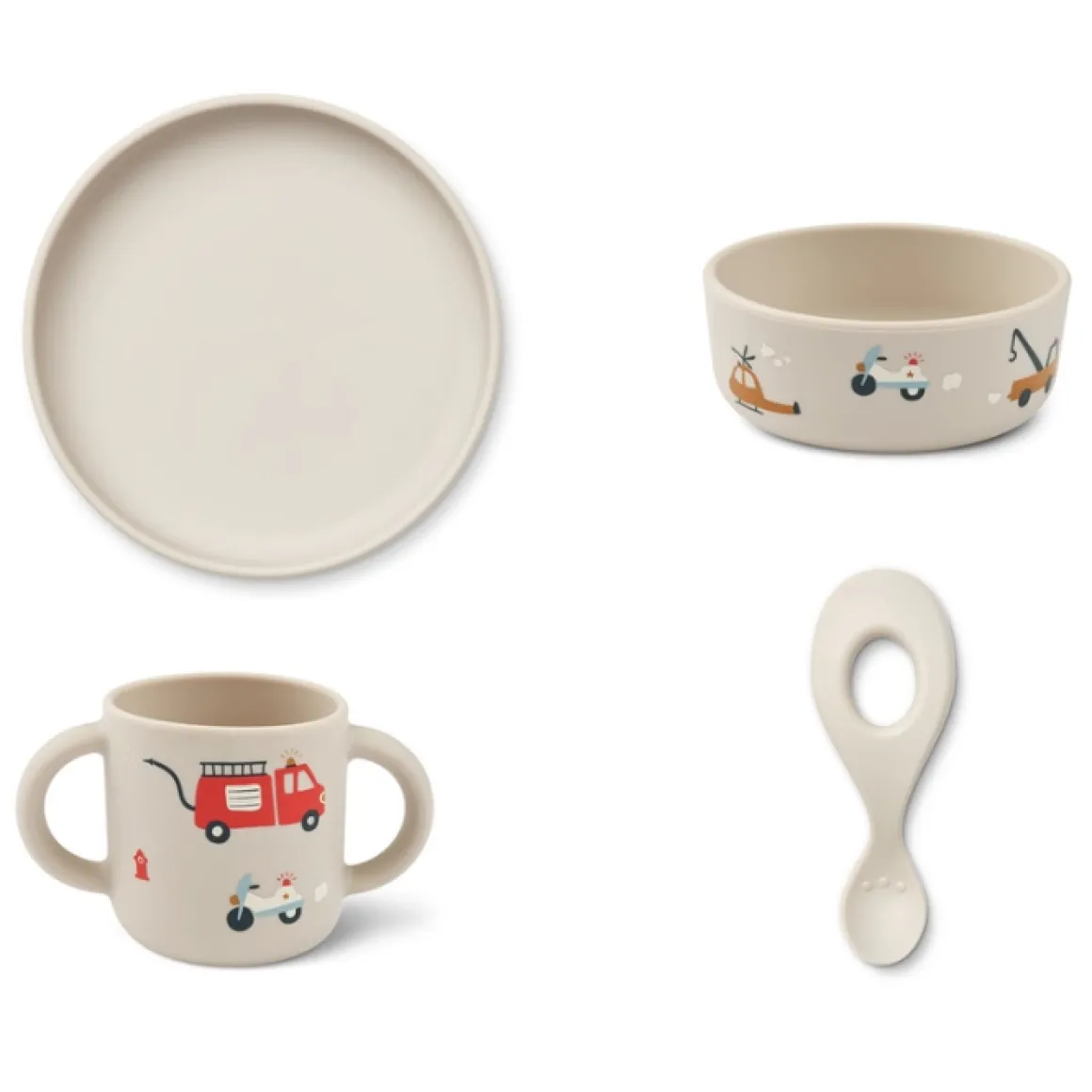 Deze Baby Serviesset Vivi Emergency Vehicle Sandy Van Liewood Is Gemaakt Van Siliconen En Kan Dus Wel Tegen Een Stootje! De Set Kan Gewassen Worden In De Vaatwasser, Yay!