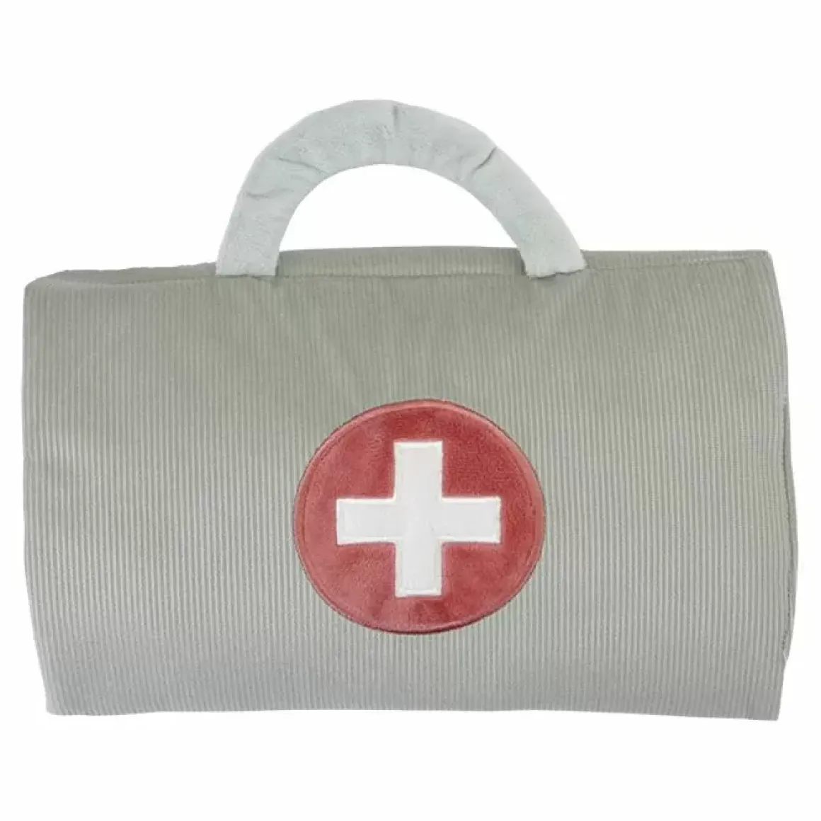 Deze Verpleeg Speelset Voor Pop Jim Zorgt Voor Vele Uren Rollenspel. De Zachte Olijfgroene Koffer Kan Opengevouwen Worden Open Tot Een Ziekenhuisbed En Bevat De Basisbenodigdheden Om De Behandeling Van Een PatiËNt Na Te Spelen. Je Kleintje Kan Jim&Rsquo;S Pyjama Aandoen, Zijn Temperatuur Opnemen Met De Thermometer, De Spuit Gebruiken Om Hem Te Genezen En De Wond Verzorgen Met Pleisters. Als Het Jims Beurt Is Om Verpleger Te Spelen, Zet Hij Zijn Verpleegkundige Pet Op En Verzorgt Hij Alle Knuffels Die Een Dokter Nodig Hebben.