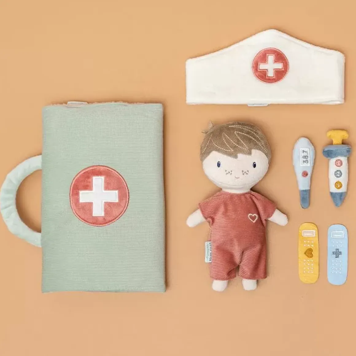 Dokter, Jim Heeft Je Verzorging Nodig! Kijk Hem Eens In Zijn Pyjama, Hij Kan Niet Wachten Om Samen Verpleger Te Spelen. Je Vindt Alles Wat Je Nodig Hebt Om Hem Te Verzorgen In Zijn Koffer.