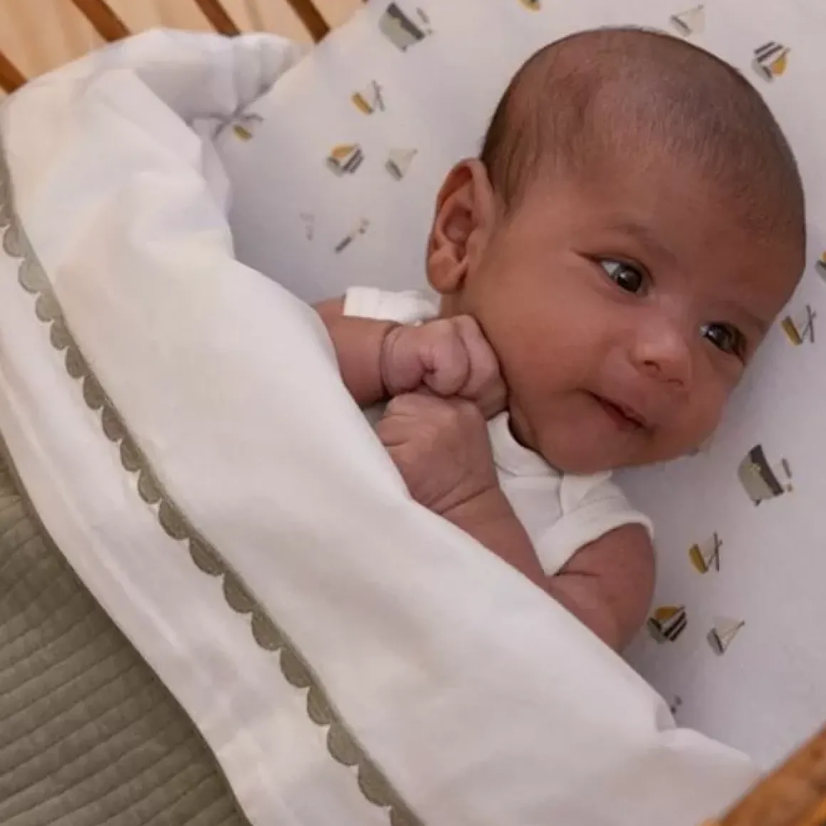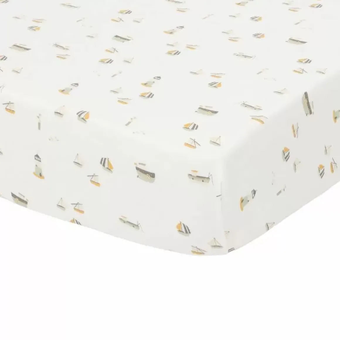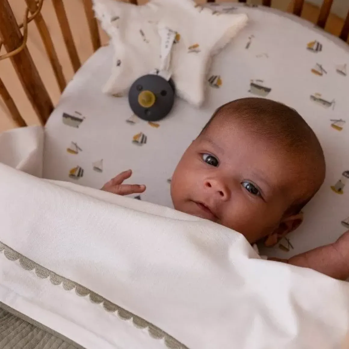 Slaap Lekker Op Het Zachte Little Dutch Hoeslaken Wieg Sailors Bay White. Combineer Deze Print Met De Mooie Pure Olive Lijn Van Little Dutch!