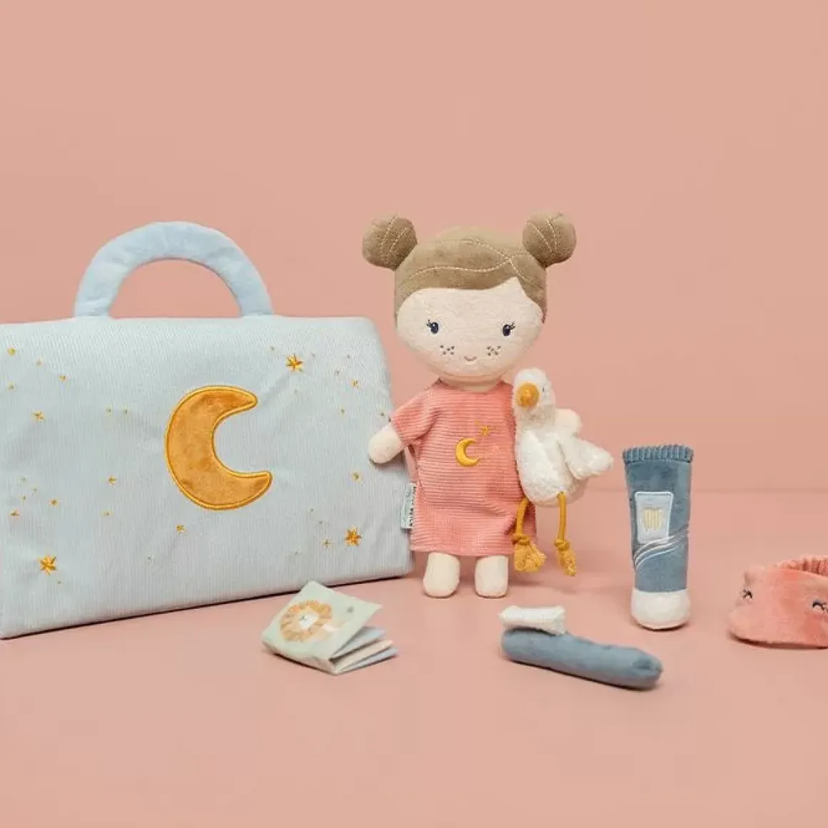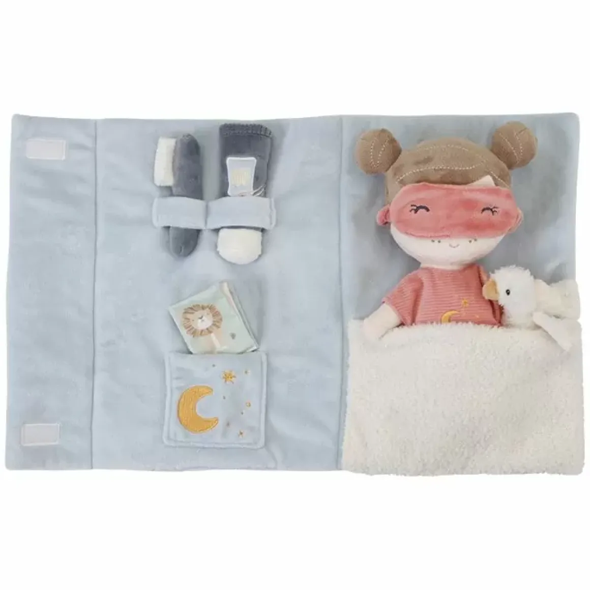 Deze Logeer Speelset Voor Pop Rosa Zorgt Voor Vele Uren Rollenspel. De Zachte Lichtblauwe Koffer Kan Opengevouwen Worden Tot Een Bed En Bevat De Schattigste Slaapaccessoires Om Het Bedtijdritueel Na Te Spelen. Je Kleintje Kan Rosa&Rsquo;S Pyjama Aandoen, Haar Voorbereiden Op Bedtijd Met De Tandenborstel En Tandpasta, Knuffelen Met Little Goose En Samen Een Verhaaltje Lezen Uit Het Voorleesboekje Over Dieren. Als Het Tijd Is Om Te Gaan Slapen, Gaat Rosa&Rsquo;S Slaapmasker Op En Kan Ze Worden Toegedekt Met De Zachte Teddydeken. Welterusten Rosa.