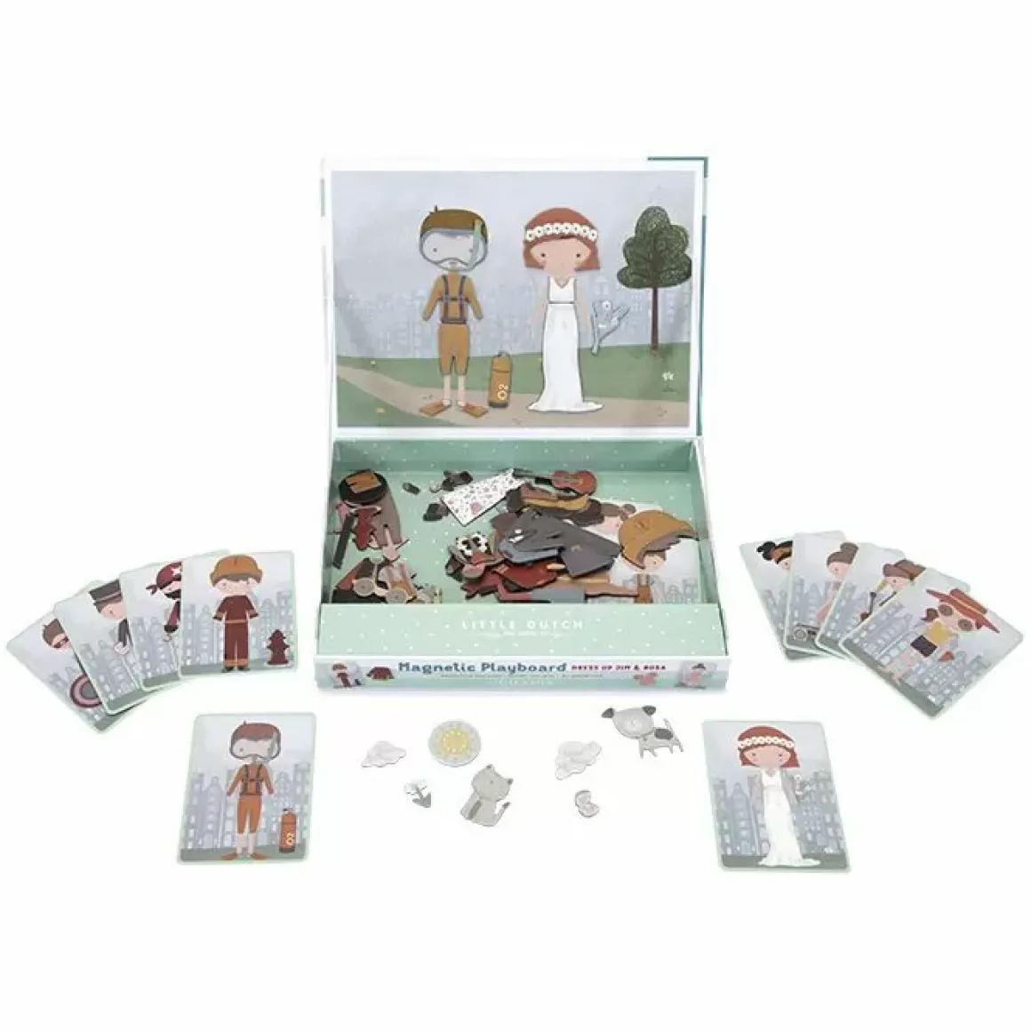 Ga Je Verkleden Met Jim &Amp; Rosa! Met Deze Magnetische Puzzel Kan Je De Outfit Die Op Het Kaartje Staat Namaken Met Magnetische Stukjes Op Het Bord, Of Gebruik Je Eigen Fantasie!