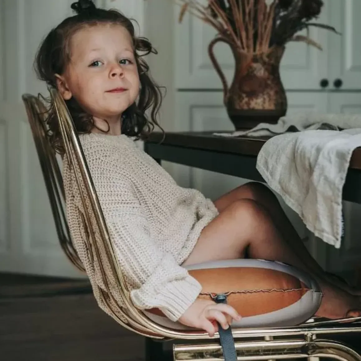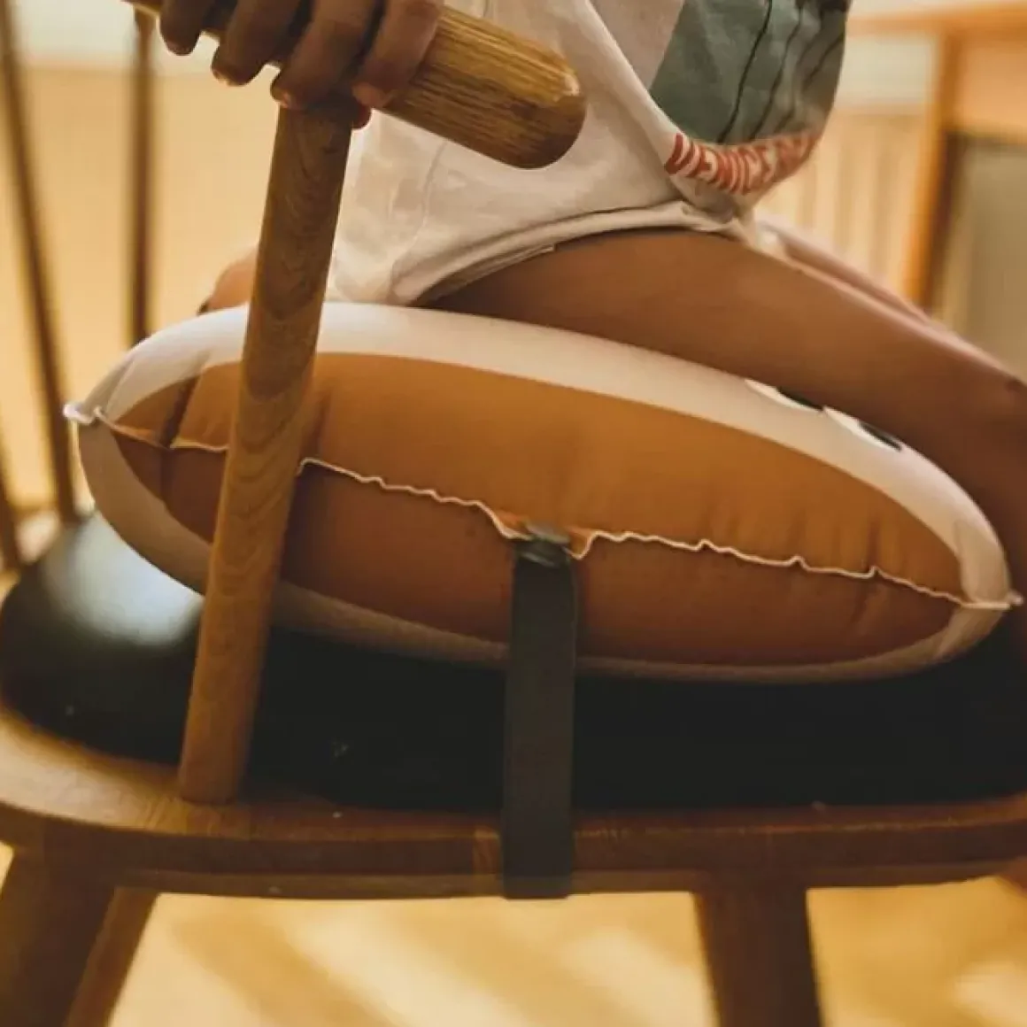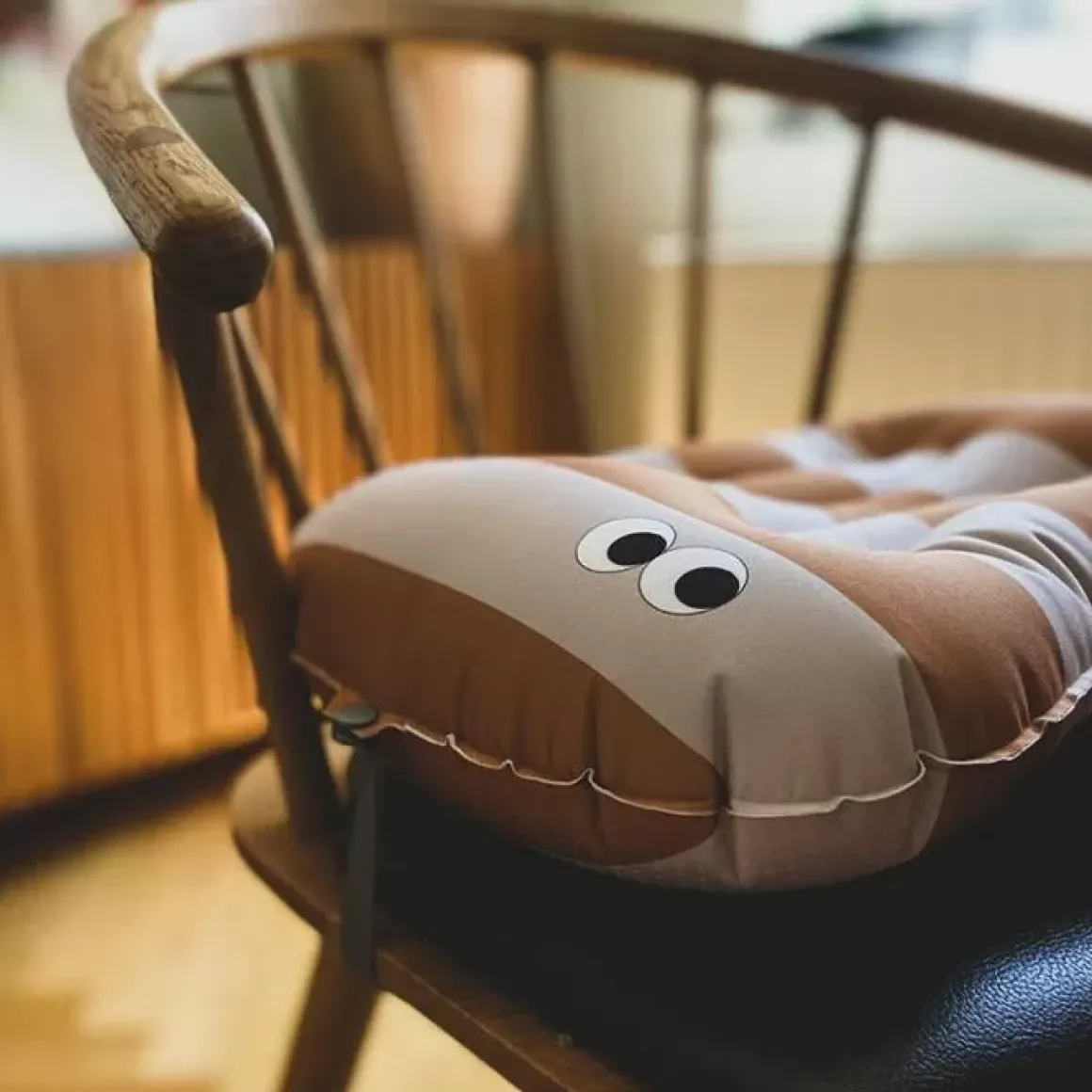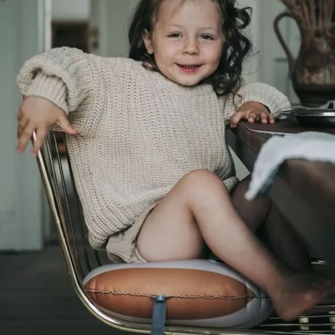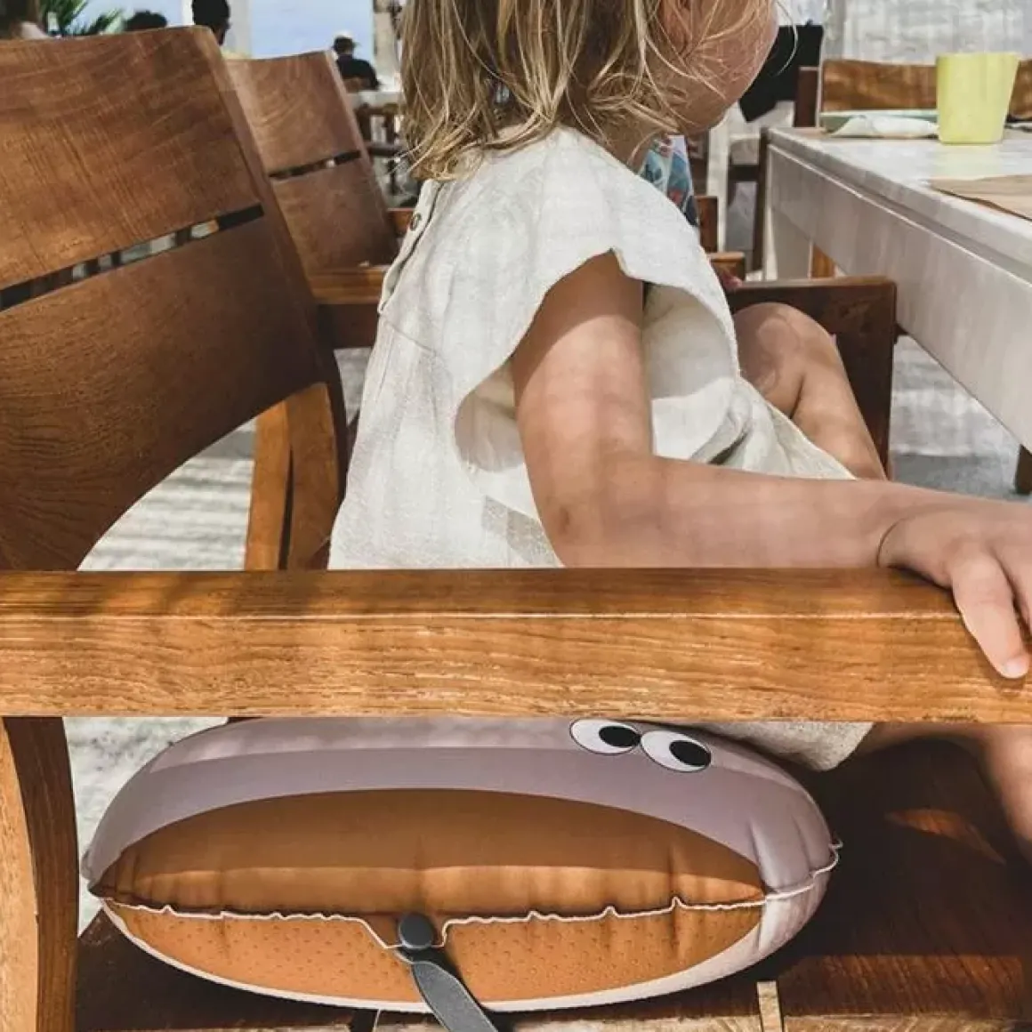 De Opblaasbare Zitkussen Mustard Nude Van Noui Noui Is Speciaal Voor Kindjes Die Te Groot Zijn Voor Een Kinderstoel En Te Klein Voor Een Volwassen Stoel.