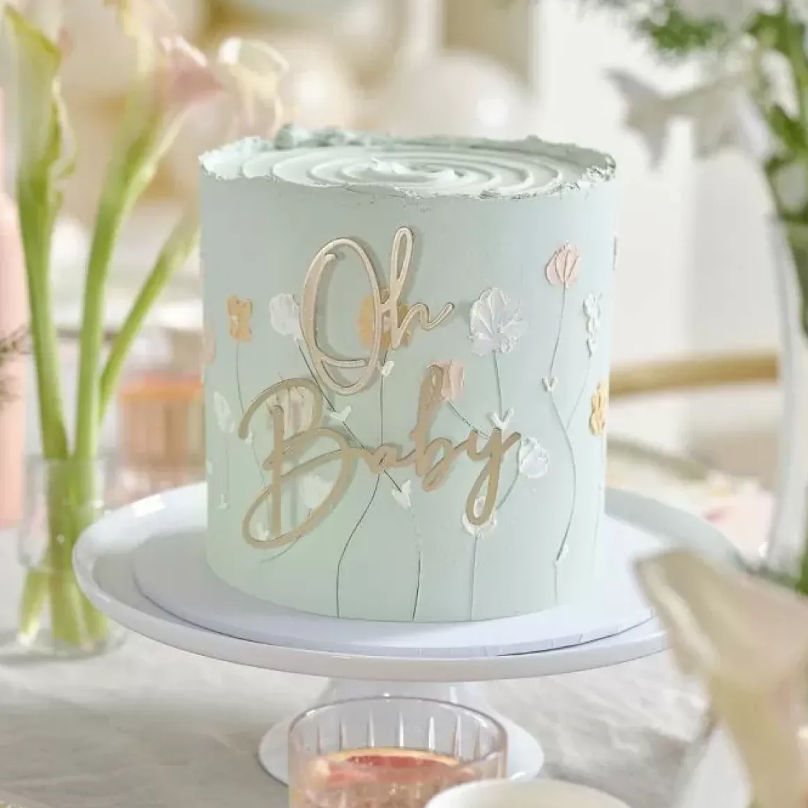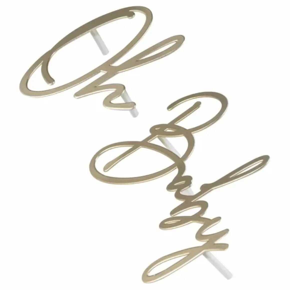 De ‘Oh Baby’ Taarttopper Van Ginger Ray Voegt Een Gouden Schittering Toe Aan Je Babyshower Viering. Deze Metalen Taartsteker, Met Zijn Stijlvolle Lettertype En Glanzende Afwerking, Staat Prachtig Op Elke Taart En Maakt Het Feest Compleet. Met ‘Oh’ Van 6,7 Cm Hoog En ‘Baby’ Van 7,6 Cm, Is Deze Topper Het Perfecte Formaat Om Stijlvol Op Te Vallen. Of Het Nu Gaat Om Een Brunch Of Een Middagthee, Met Deze Prachtige Decoratie Wordt Het Vieren Van De Aanstaande Moeder Nóg Specialer.