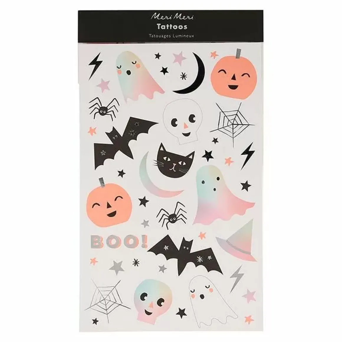 Ook Leuk Om Als Cadeautje Te Geven Bij Een Traktratie! In De Verpakking Zitten Twee Vellen Met Halloween Iconen Zoals Schedels, Vleermuizen, Spinnen, Spoken En Manen. De Plaktatoeages Hebben Pasteltinten Met Glanzende Zilveren Details. Geschikt Voor Kinderen Vanaf 3 Jaar.