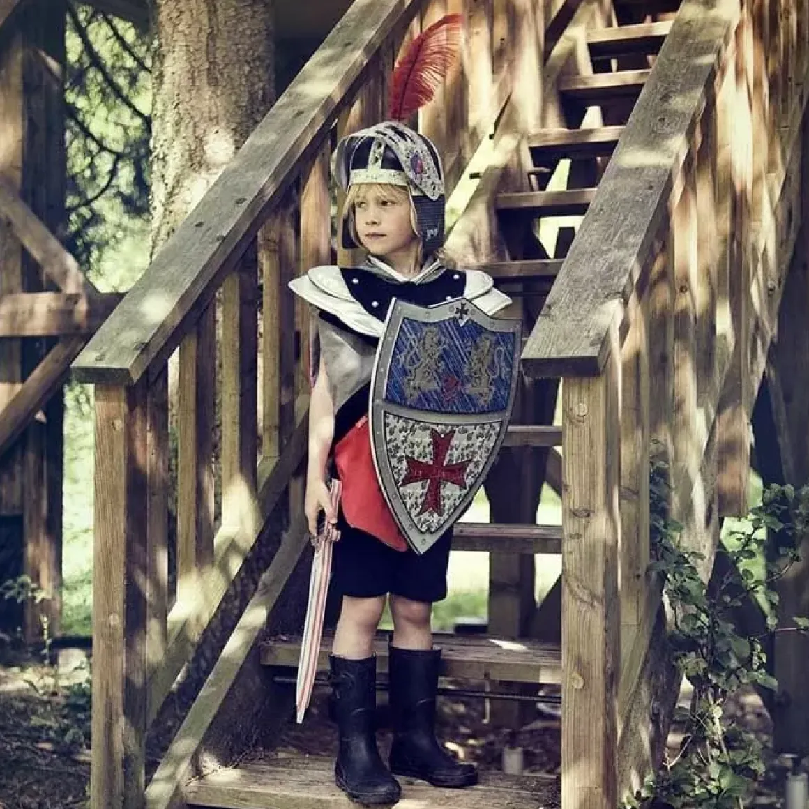 Ben Jij Die Stoere Ridder Ter Paard? Die Onderweg Is Naar Het Kasteel Van Zijn Grote Liefde En Om Te Vechten Met Draken! Dit Ridderkostuum Is Een Echte Musthave Voor Een Ridder Als Jij! Het Pak Past Gemakkelijk Over Je Kleren Heen En Heeft Brede Zilveren Schouders Van Nepleer. Een Ridder Is Niks Zonder Een Zwaard, Daarom Heeft Dit Pak Klittenband Aan De Voorkant Waar Je Het Zwaard Tussen Kan Steken.