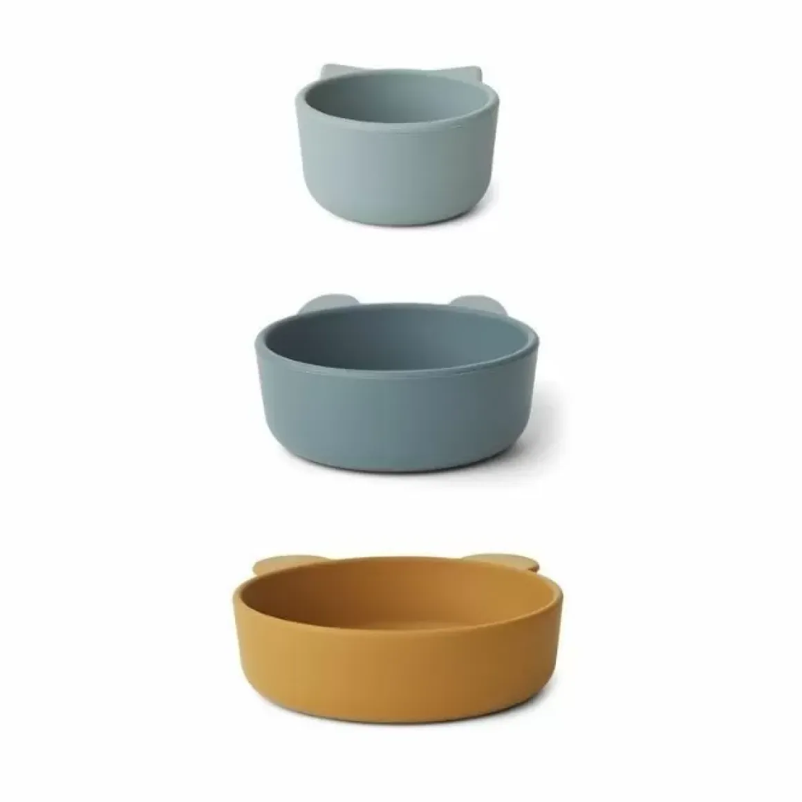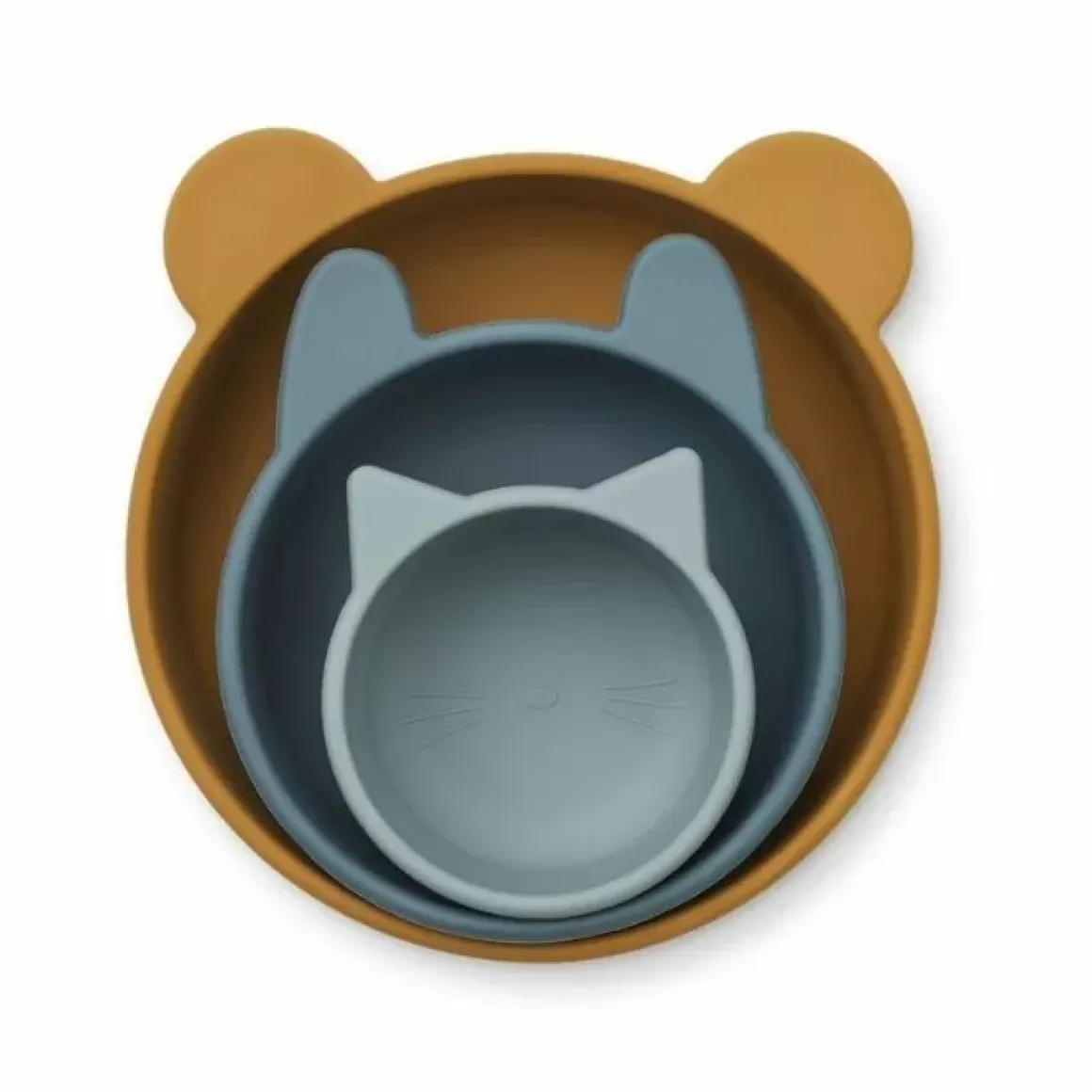 Drie Kommen Met Dierenoortjes, Perfect Voor Kleine Snack Of Het Vullen Met De Eerste Hapjes. Doordat De Kommen Zijn Gemaakt Van 100% Siliconen Zijn De Kommen Buigbaar En Onbreekbaar. Om Het Nog Makkelijker Te Maken Kunnen Deze Lieve Snack Bakjes Ook Nog Eens In De Vaatwasser.
