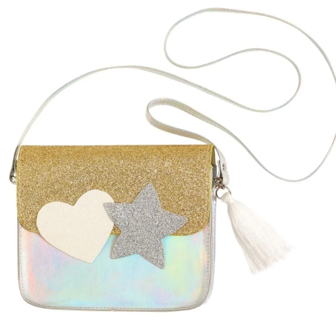 Dit Betoverende Glinsterende Tasje Is Niet Alleen Een Accessoire, Maar Ook Een Stukje Magie Dat De Verbeelding Van Je Kind Tot Leven Brengt. Met Zijn Levendige Hart En Ster Ontwerp En Iridecent Accenten Is De “Noelle” Een Stijlvolle Keuze Voor Jonge Fashionista’S.