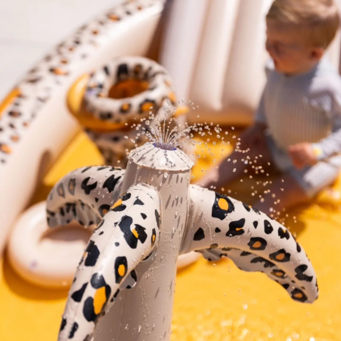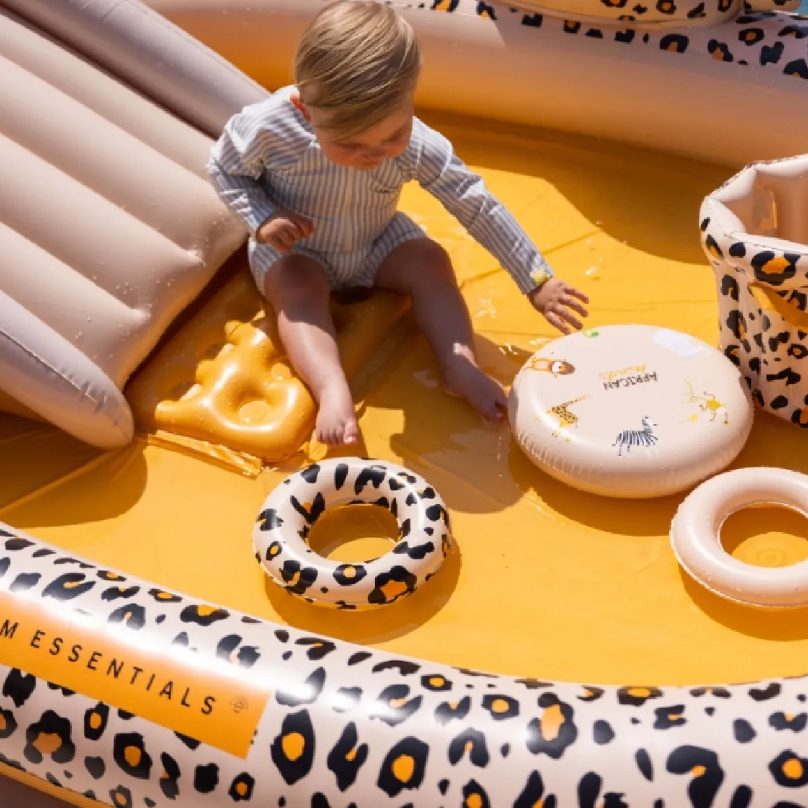 Blije Kindergezichtjes Wanneer Je Dit Geweldige Swim Essentials Opblaaszwembad Adventure Leopard Beige In Je Tuin Zet. Een Glijbaan, Sproeier, Ringen, Het Activiteitenzwembad Heeft Allemaal!