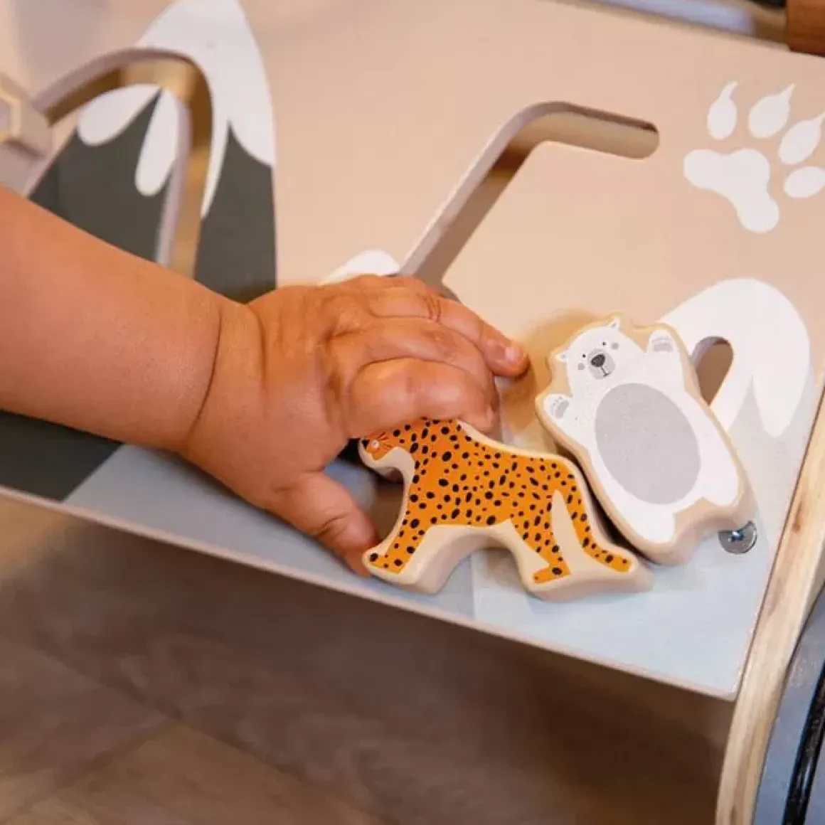 Op Deze Loopwagen Zijn Verschillende Activiteiten Te Vinden Die De Motoriek Van Je Kindje Helpen Ontwikkelen. Op De Voorkant Bevindt Zich Een Klokje Met Draaiende Wijzers, Een Kralenspiraal, Rammelaar En Schuifblokjes In De Vorm Van Diertjes. Aan De Zijkant Zit Een Vormenstoof Met 2 Losse Blokjes En Aan De Andere Kant Draaiende Tandwielen. Genoeg Voor Eindeloos Speelplezier! Leer Spelenderwijs Lopen Met Deze Houten Loopwagen Van Tryco Vanaf 12 Maanden.